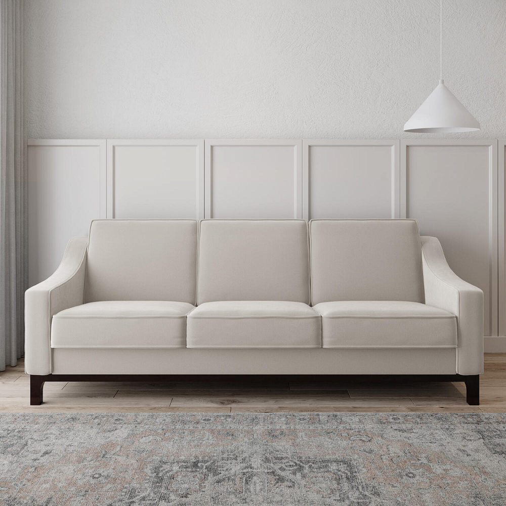 Диван «Клайд» с выбором положения спинки исполнен в уютном, минималистичном дизайне. Простота геометрических форм и отсутствие лишних элементов декора — главная концепция, которая воплощена в данной модели. Задняя часть спинки выполнена в основной обивочной ткани, что дает возможность зонировать комнату и свободно размещать диван. Элегантные высокие ножки добавляют модели изысканности, а прочная и приятная на ощупь ткань подарит истинное эстетическое и тактильное наслаждение.