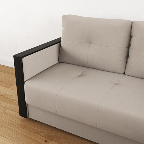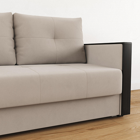 Механизм трансформации «Еврокнижка». Диван легко раскладывается: нужно выкатить вперёд сиденье и опустить спинку. Удобен механизм ещё тем, что двигается только передняя часть, поэтому отодвигать диван от стены не требуется.