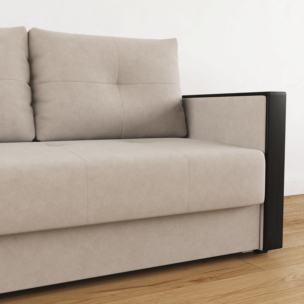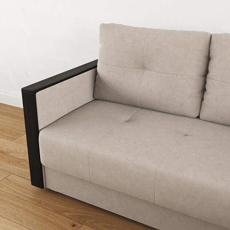 Механизм трансформации «Еврокнижка». Диван легко раскладывается: нужно выкатить вперёд сиденье и опустить спинку. Удобен механизм ещё тем, что двигается только передняя часть, поэтому отодвигать диван от стены не требуется.