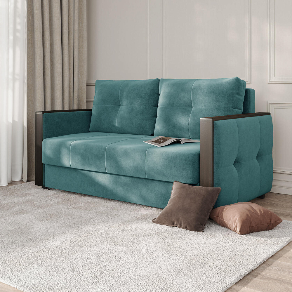 Двухместный диван «Винг» объединяет строгие геометрические формы и мягкую воздушность. Прямые подлокотники можно использовать в качестве мини-столешницы для небольших предметов. Механизм трансформации в разложенном виде позволяет обеспечивает комфортное, ровное спальное место. Спинка дивана выполнена в той же обивке, что и основная часть, что даёт возможность использовать модель для зонирования комнаты.