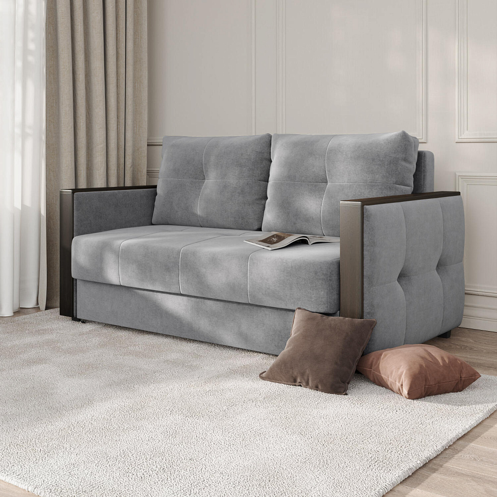 Двухместный диван «Винг» объединяет строгие геометрические формы и мягкую воздушность. Прямые подлокотники можно использовать в качестве мини-столешницы для небольших предметов. Механизм трансформации в разложенном виде позволяет обеспечивает комфортное, ровное спальное место. Спинка дивана выполнена в той же обивке, что и основная часть, что даёт возможность использовать модель для зонирования комнаты.