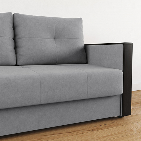 Механизм трансформации «Еврокнижка». Диван легко раскладывается: нужно выкатить вперёд сиденье и опустить спинку. Удобен механизм ещё тем, что двигается только передняя часть, поэтому отодвигать диван от стены не требуется.