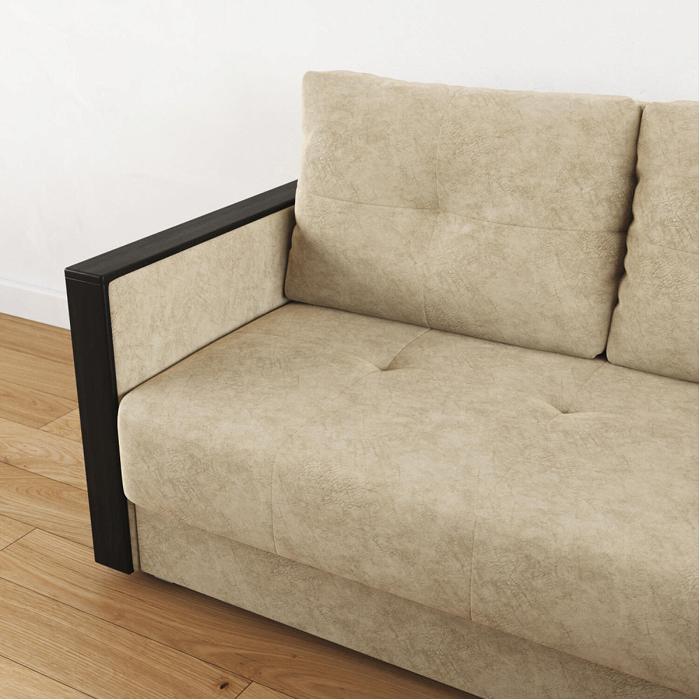 Механизм трансформации «Еврокнижка». Диван легко раскладывается: нужно выкатить вперёд сиденье и опустить спинку. Удобен механизм ещё тем, что двигается только передняя часть, поэтому отодвигать диван от стены не требуется.