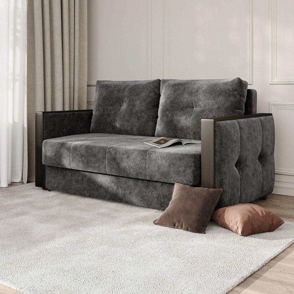 Двухместный диван «Винг» объединяет строгие геометрические формы и мягкую воздушность. Прямые подлокотники можно использовать в качестве мини-столешницы для небольших предметов. Механизм трансформации в разложенном виде позволяет обеспечивает комфортное, ровное спальное место. Спинка дивана выполнена в той же обивке, что и основная часть, что даёт возможность использовать модель для зонирования комнаты.