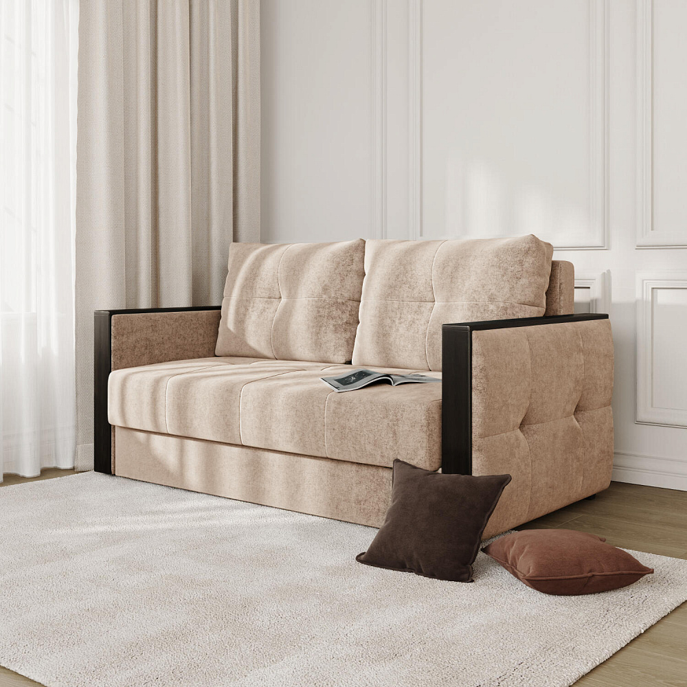 Двухместный диван «Винг» объединяет строгие геометрические формы и мягкую воздушность. Прямые подлокотники можно использовать в качестве мини-столешницы для небольших предметов. Механизм трансформации в разложенном виде позволяет обеспечивает комфортное, ровное спальное место. Спинка дивана выполнена в той же обивке, что и основная часть, что даёт возможность использовать модель для зонирования комнаты.