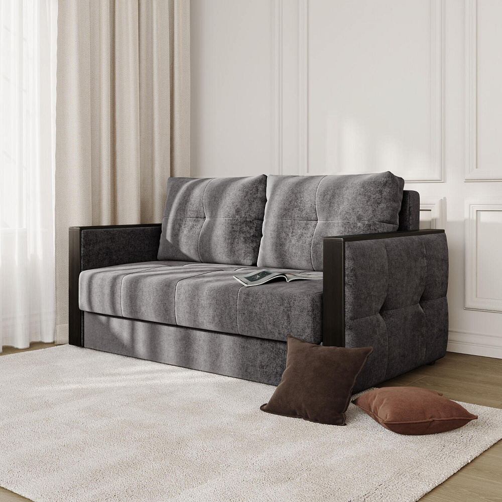 Двухместный диван «Винг» объединяет строгие геометрические формы и мягкую воздушность. Прямые подлокотники можно использовать в качестве мини-столешницы для небольших предметов. Механизм трансформации в разложенном виде позволяет обеспечивает комфортное, ровное спальное место. Спинка дивана выполнена в той же обивке, что и основная часть, что даёт возможность использовать модель для зонирования комнаты.