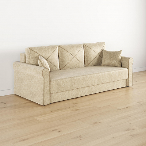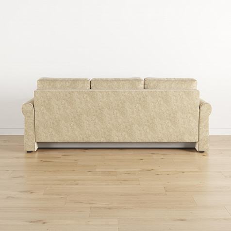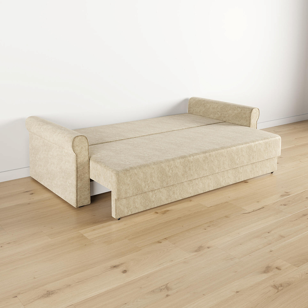 - Механизм трансформации «Еврокнижка». Диван легко раскладывается — достаточно выкатить вперёд сиденье и опустить спинку. Отодвигать диван от стены не требуется.