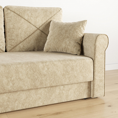 Диван «Имола» поможет создать комфортную зону отдыха в современной гостиной. Аккуратная строчка на приспиных подушках в комбинации с закруглённой формой подлокотников формирует элегантный, но при этом сдержанный образ. Механизм «Еврокнижка» в сложенном виде поможет сэкономить пространство в комнате и использовать диван для ежедневного сна. Спинка дивана выполнена в обивочной ткани, что идеально подходит для зонирования комнаты.