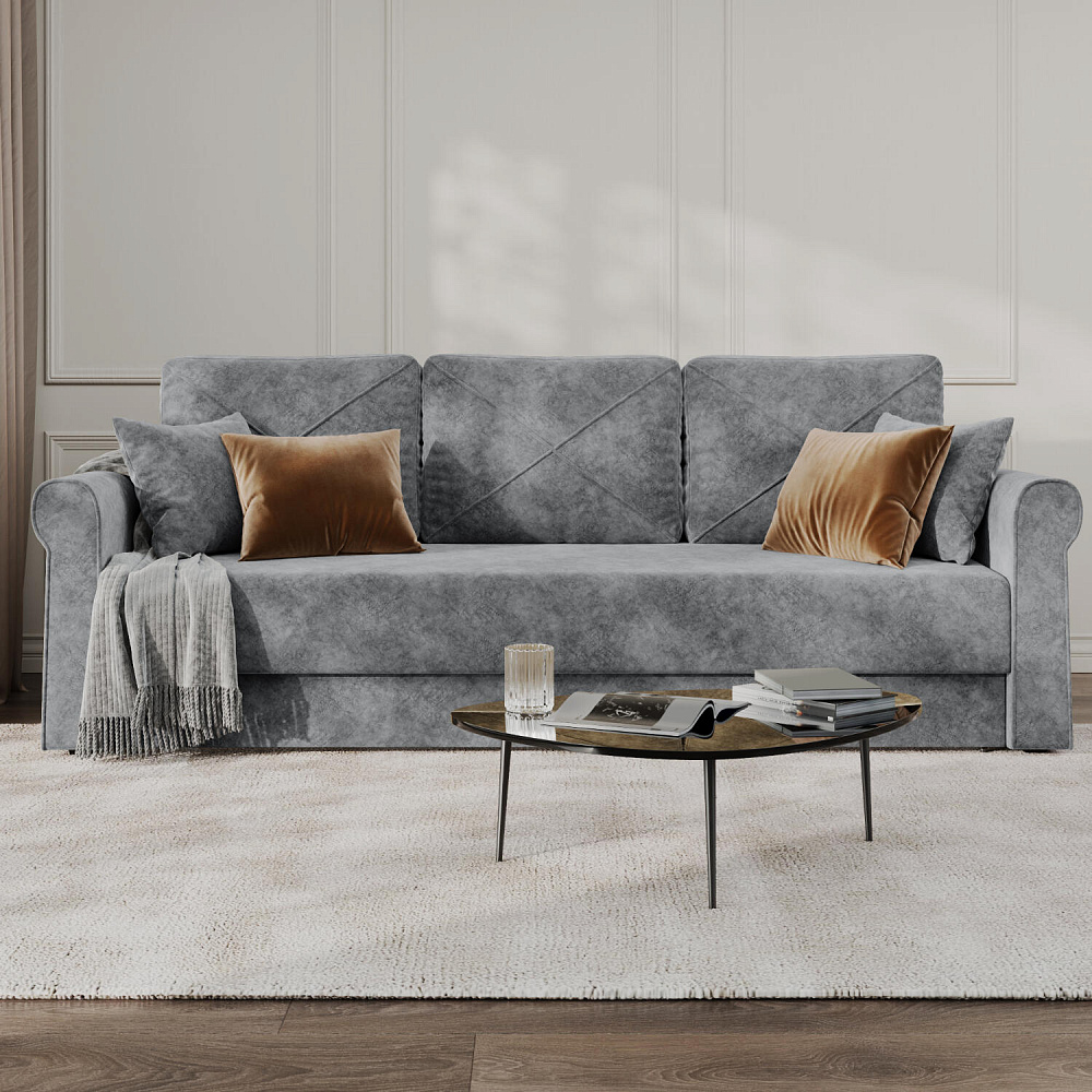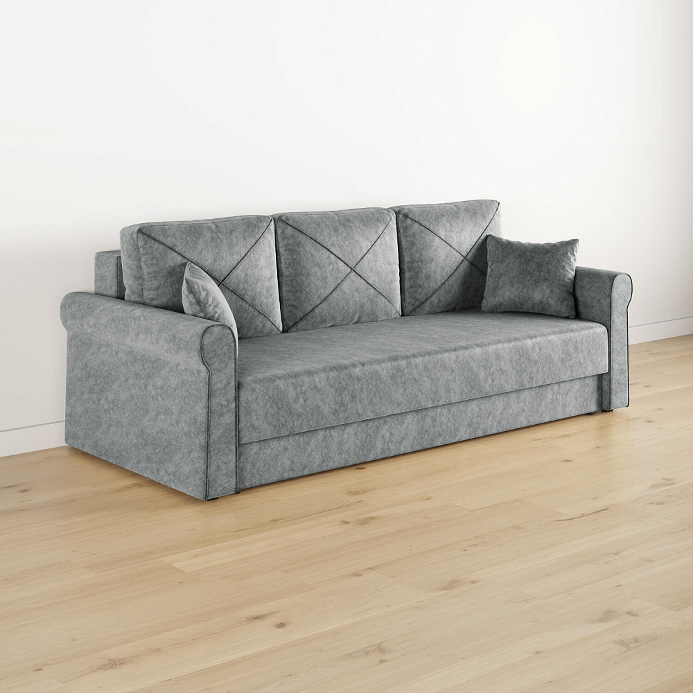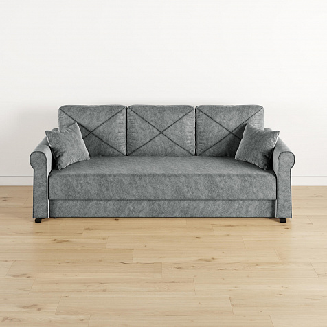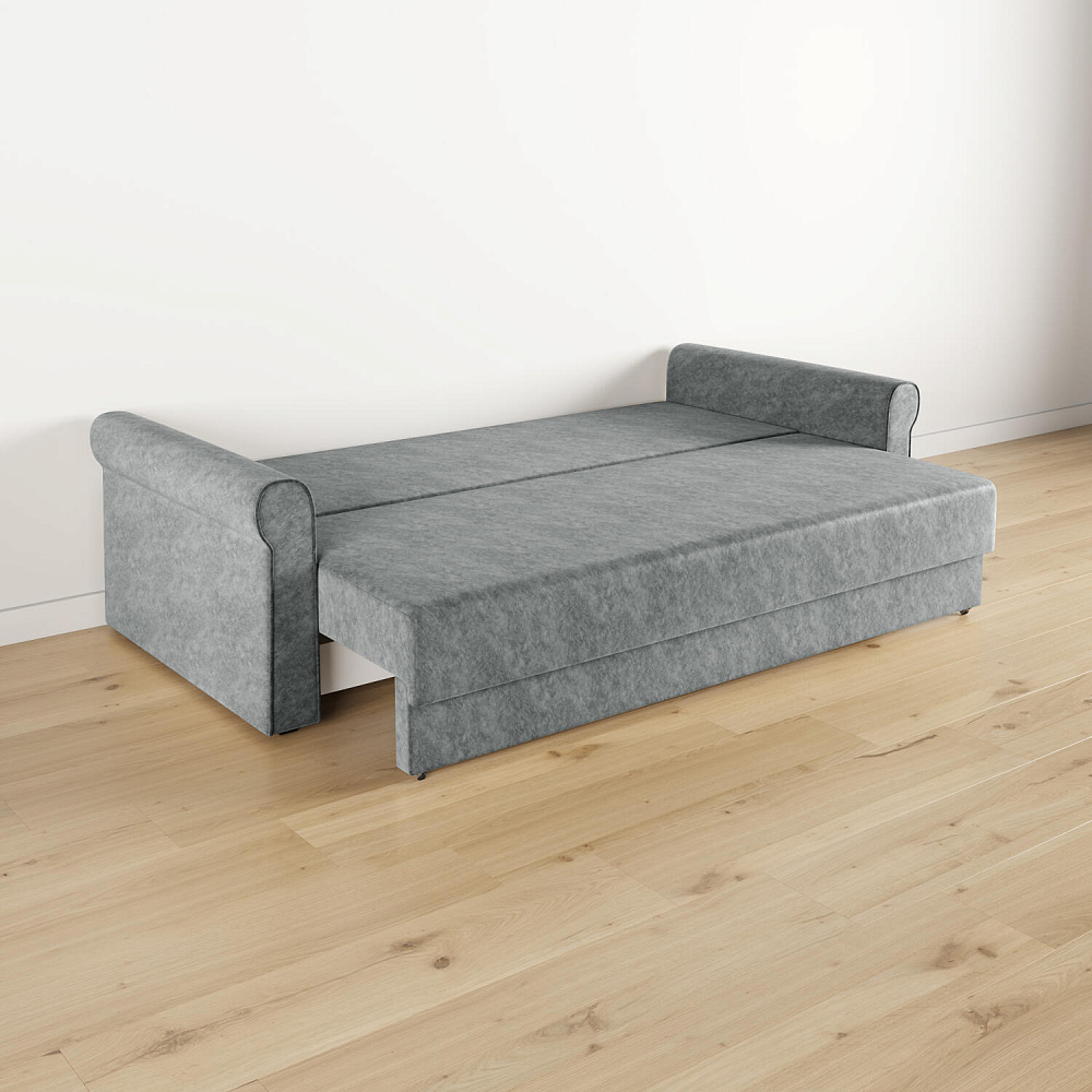 - Механизм трансформации «Еврокнижка». Диван легко раскладывается — достаточно выкатить вперёд сиденье и опустить спинку. Отодвигать диван от стены не требуется.