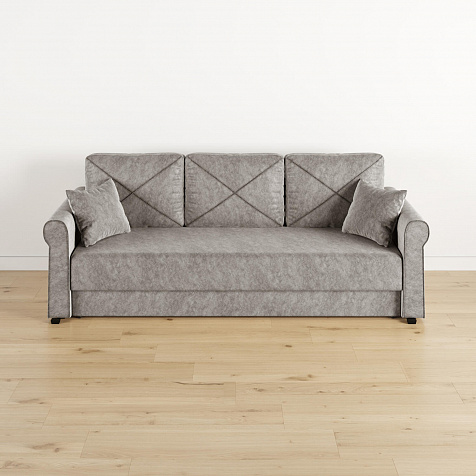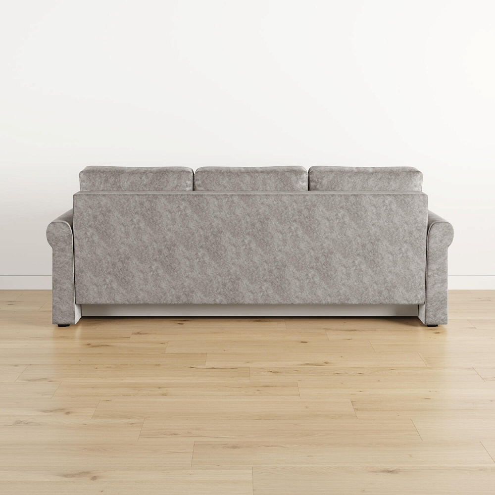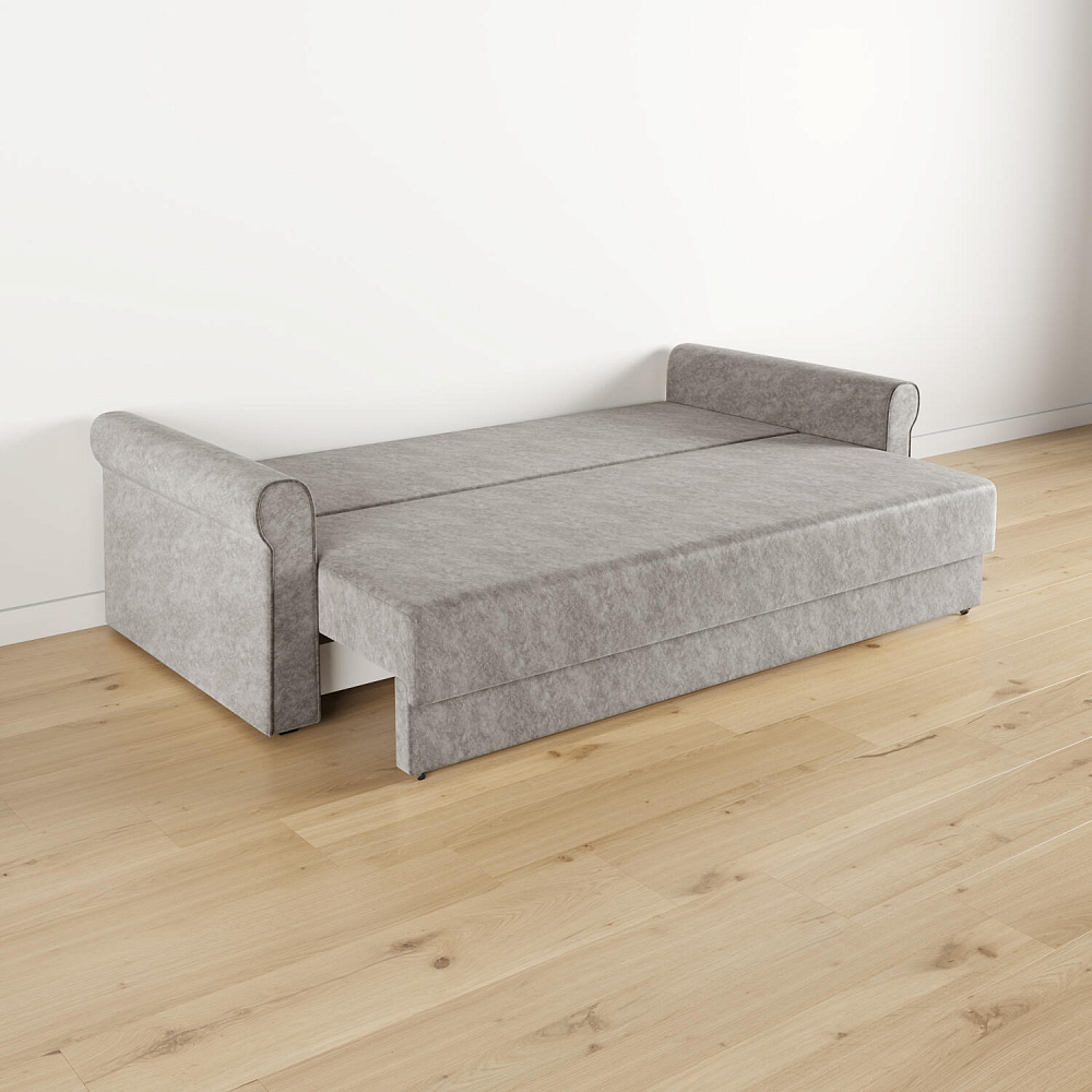 - Механизм трансформации «Еврокнижка». Диван легко раскладывается — достаточно выкатить вперёд сиденье и опустить спинку. Отодвигать диван от стены не требуется.