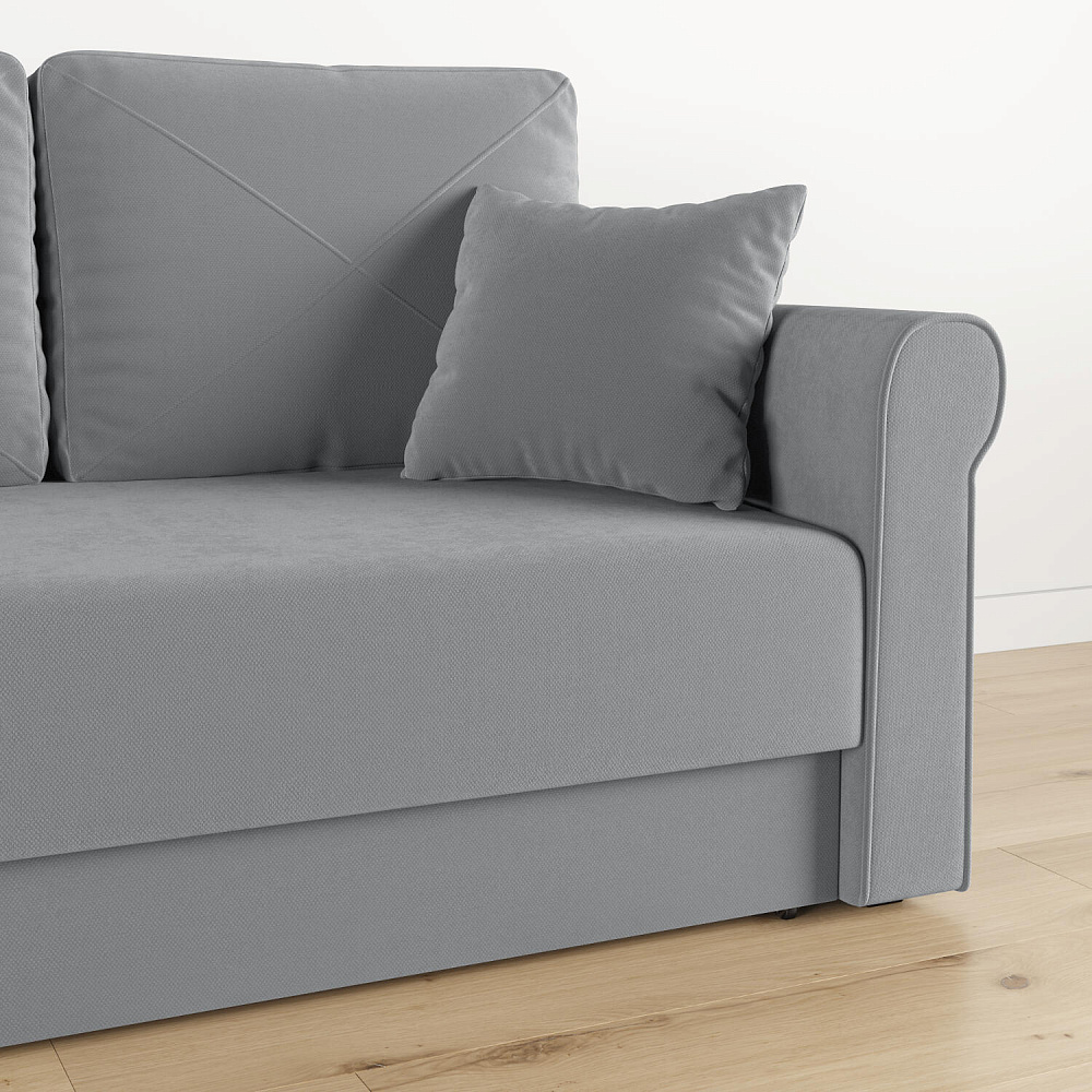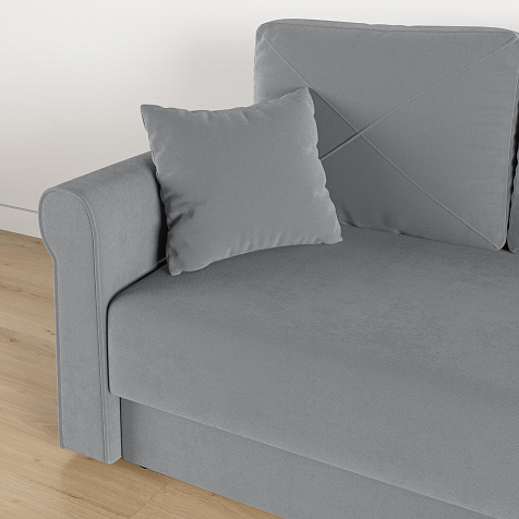 - Обивка из велюра. Диван выполнен в приятной на ощупь ткани, которая пропускает воздух, тянется и устойчива к истиранию.