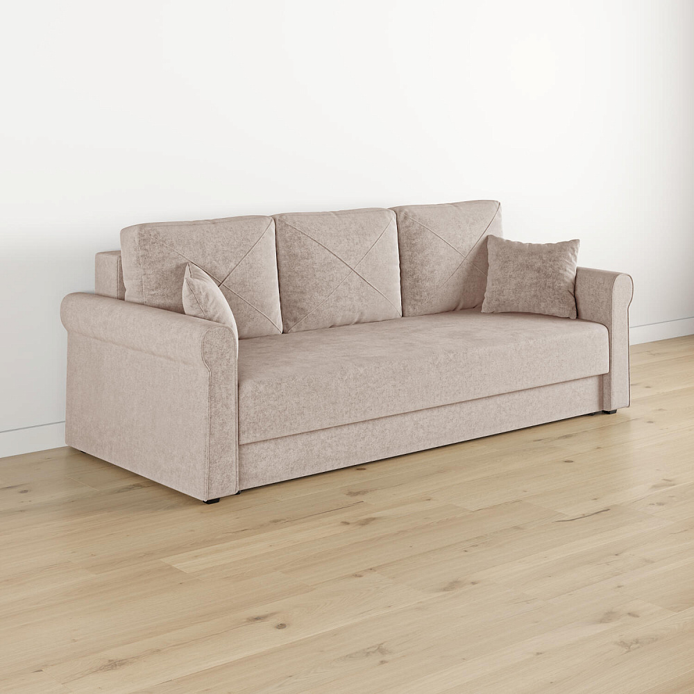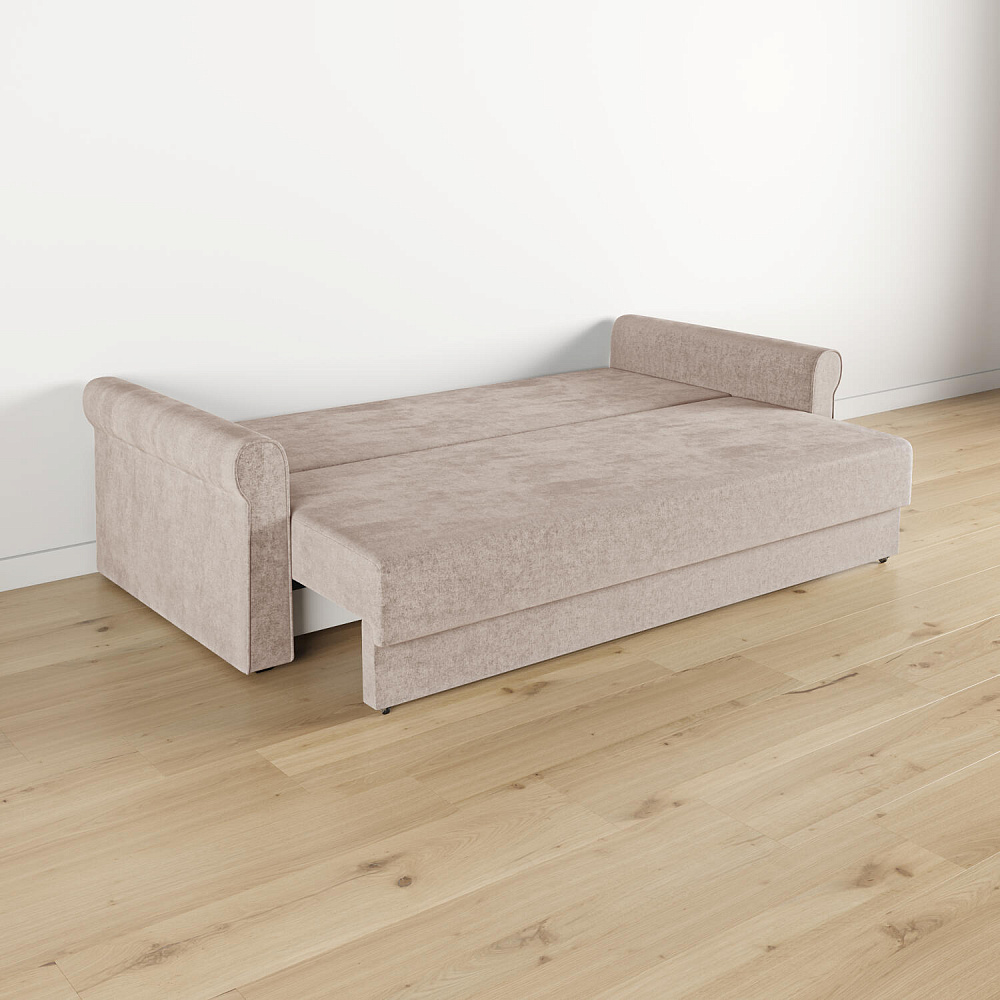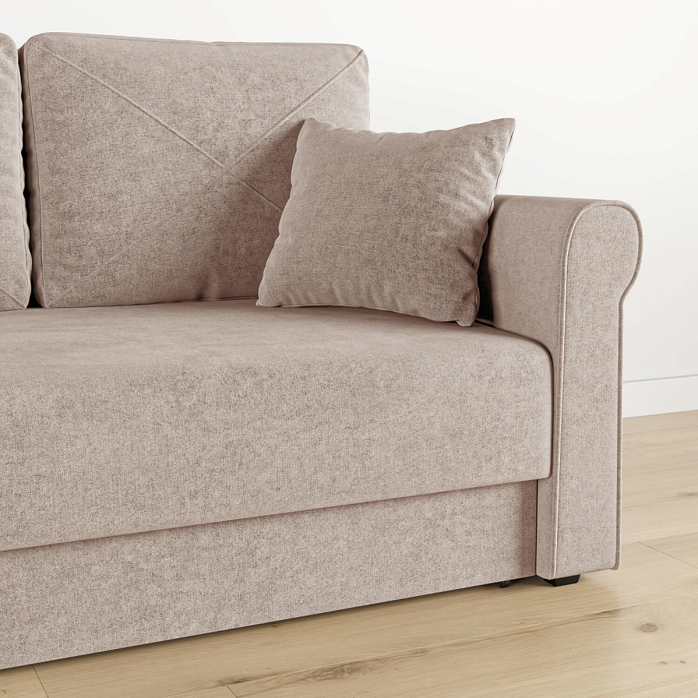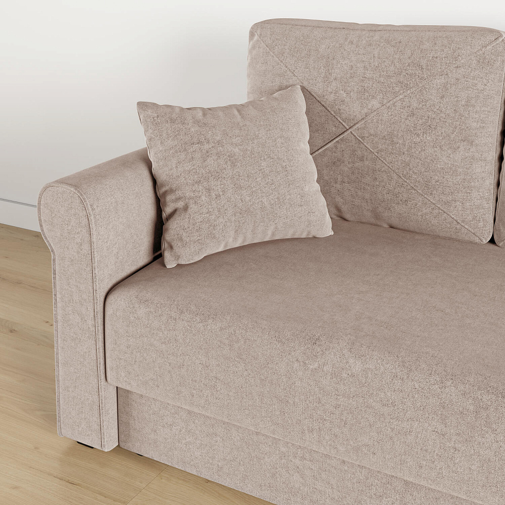 - Механизм трансформации «Еврокнижка». Диван легко раскладывается — достаточно выкатить вперёд сиденье и опустить спинку. Отодвигать диван от стены не требуется.