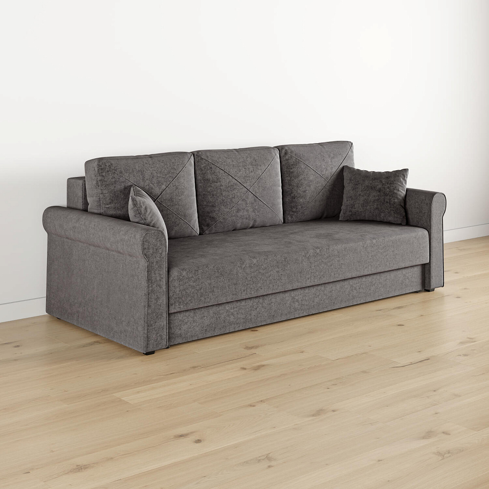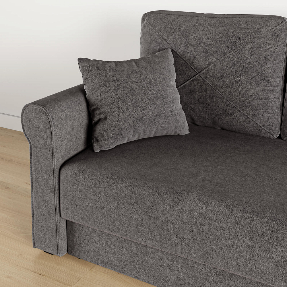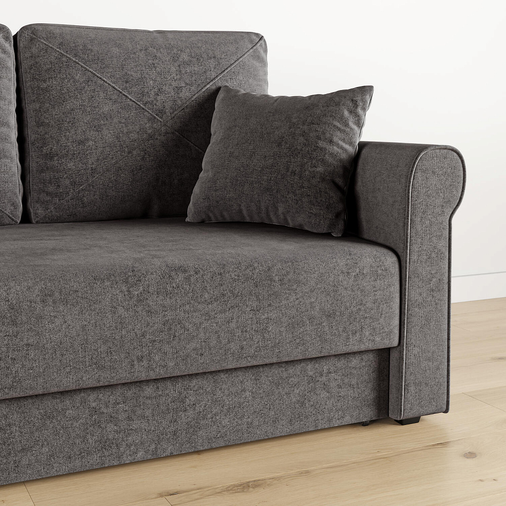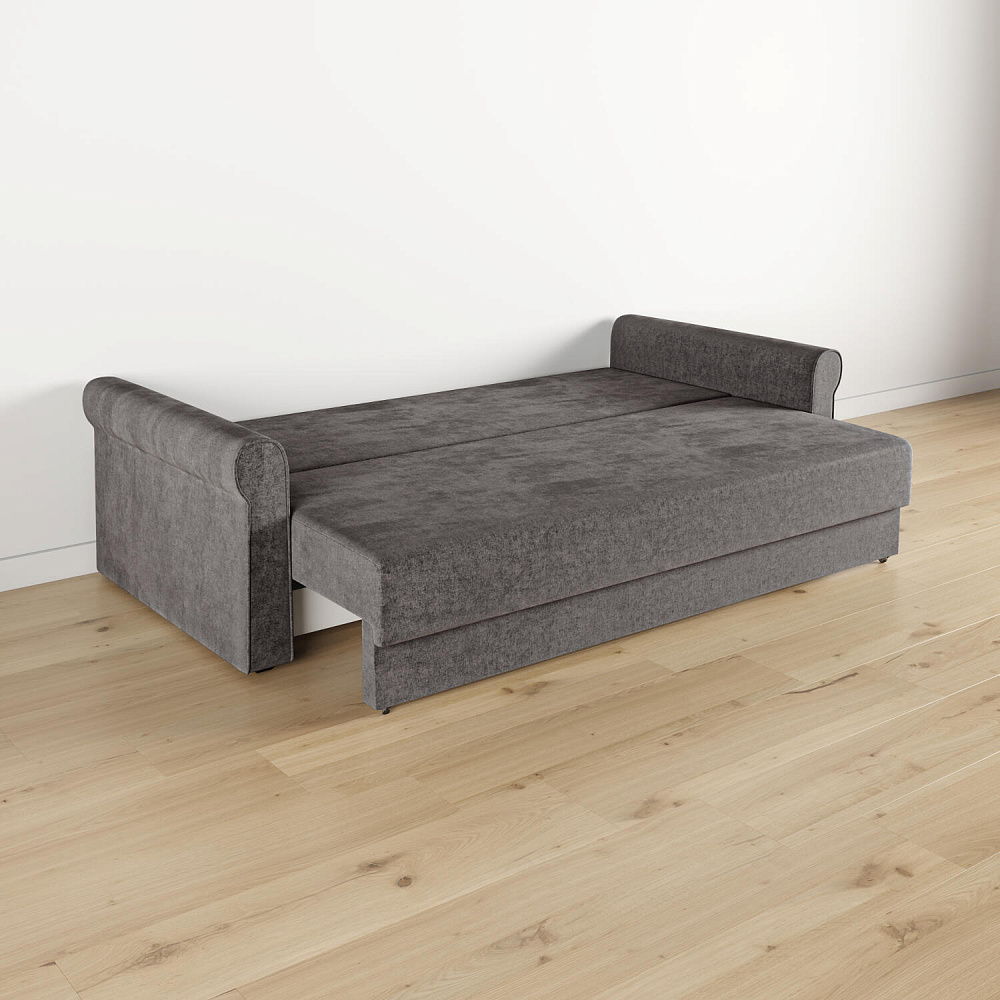 - Механизм трансформации «Еврокнижка». Диван легко раскладывается — достаточно выкатить вперёд сиденье и опустить спинку. Отодвигать диван от стены не требуется.