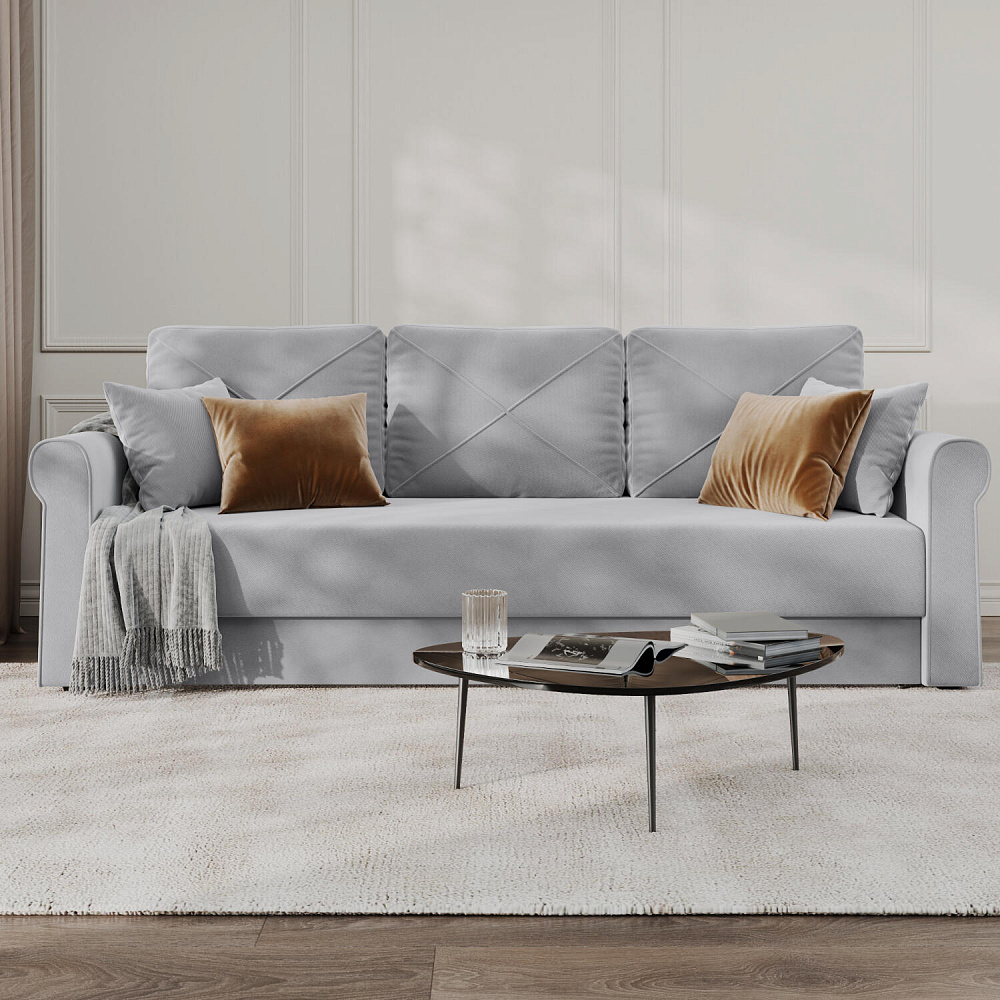 Диван «Имола» поможет создать комфортную зону отдыха в современной гостиной. Аккуратная строчка на приспиных подушках в комбинации с закруглённой формой подлокотников формирует элегантный, но при этом сдержанный образ. Механизм «Еврокнижка» в сложенном виде поможет сэкономить пространство в комнате и использовать диван для ежедневного сна. Спинка дивана выполнена в обивочной ткани, что идеально подходит для зонирования комнаты.