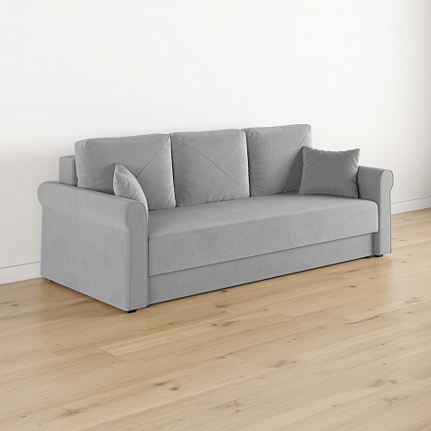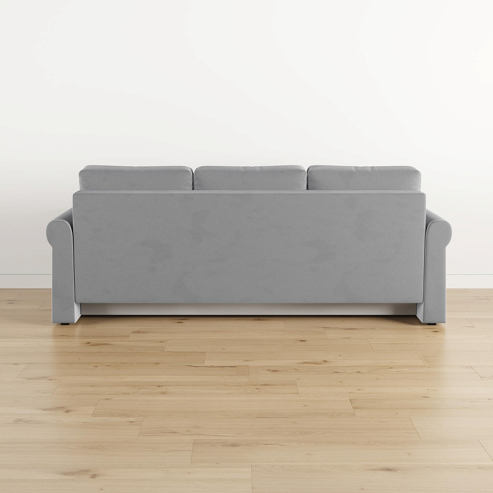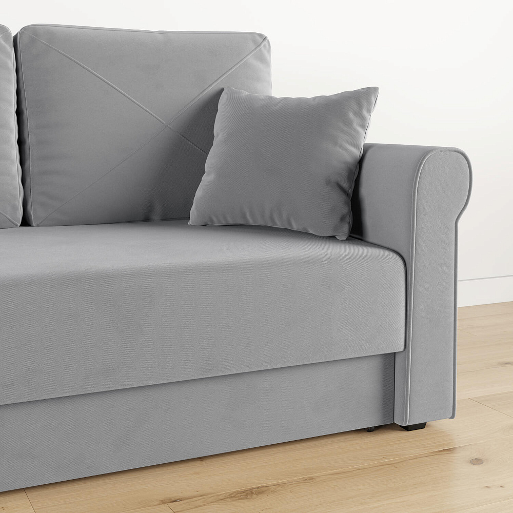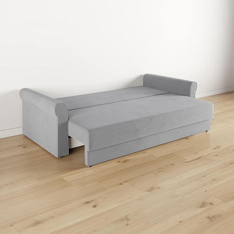 - Механизм трансформации «Еврокнижка». Диван легко раскладывается — достаточно выкатить вперёд сиденье и опустить спинку. Отодвигать диван от стены не требуется.