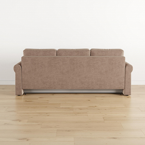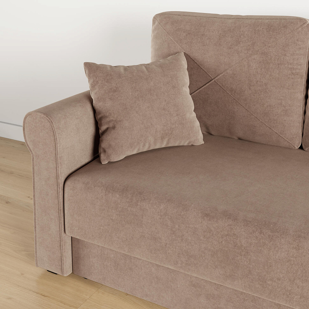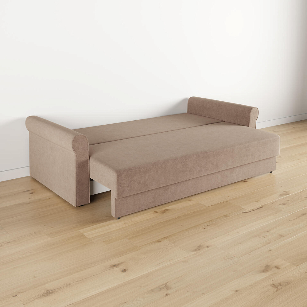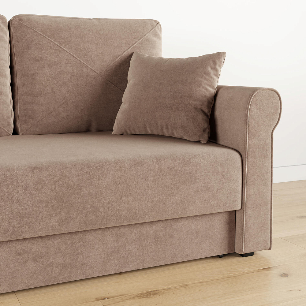 - Механизм трансформации «Еврокнижка». Диван легко раскладывается — достаточно выкатить вперёд сиденье и опустить спинку. Отодвигать диван от стены не требуется.