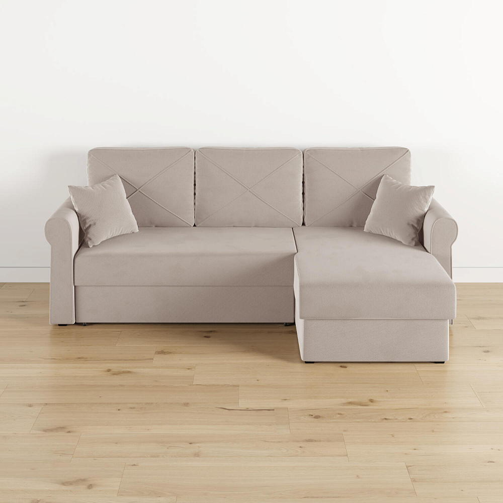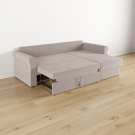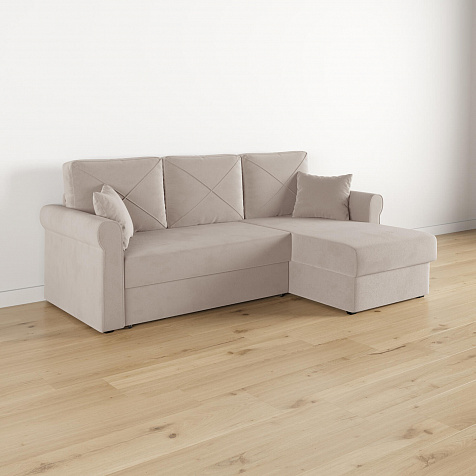 - Вместительный короб. В угловой части дивана скрыт ящик для постельных принадлежностей.