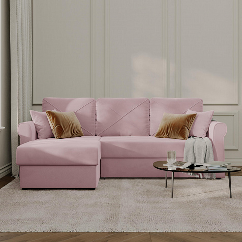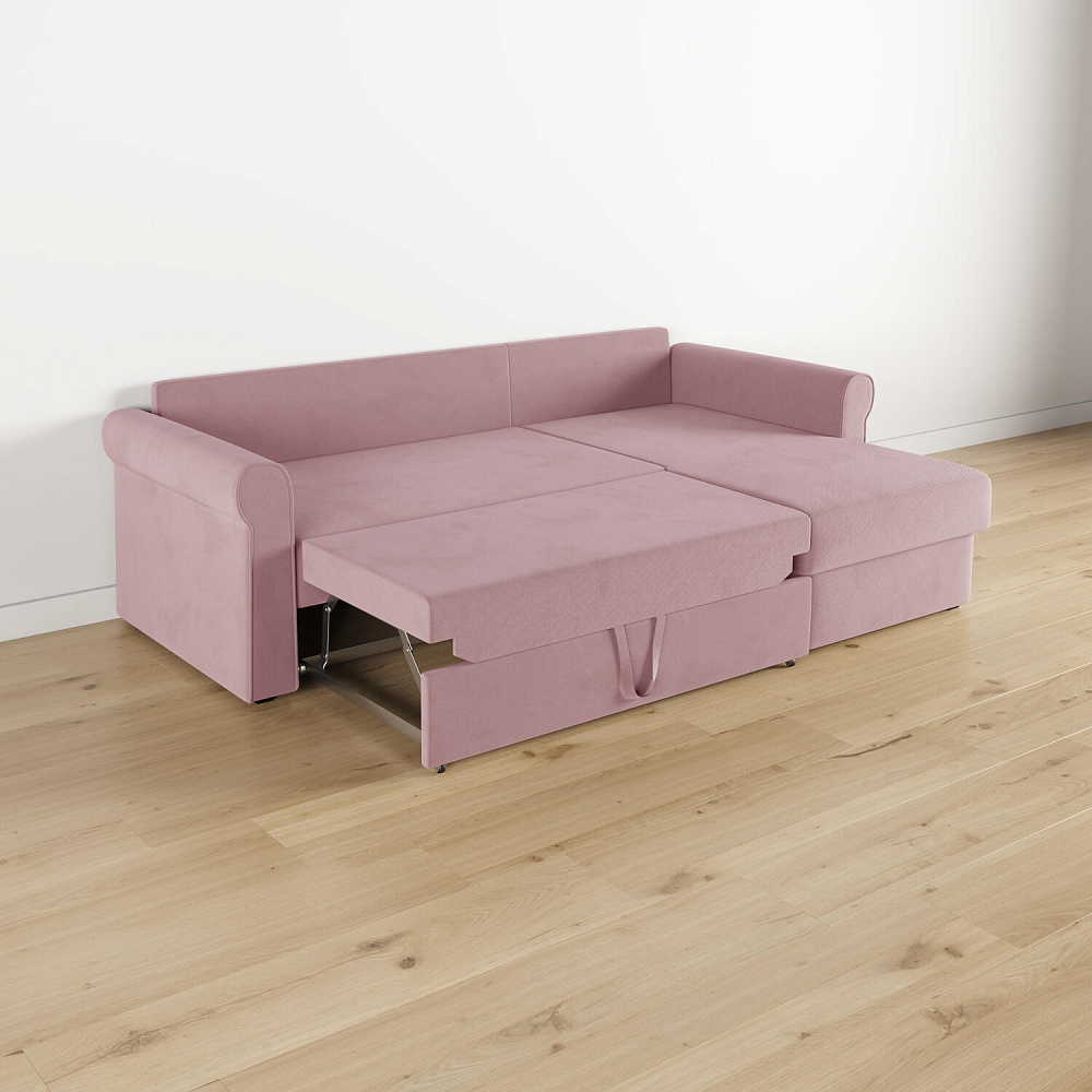 - Вместительный короб. В угловой части дивана скрыт ящик для постельных принадлежностей.