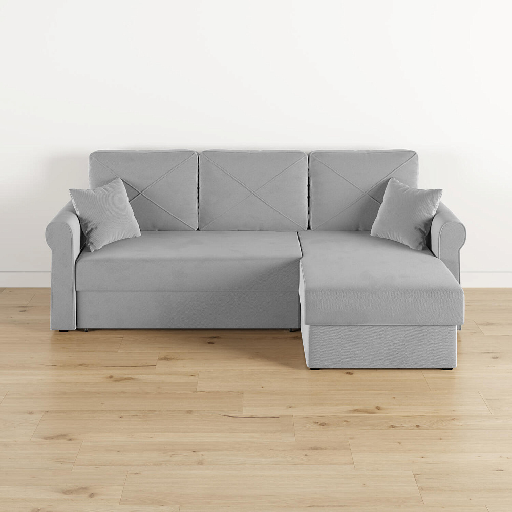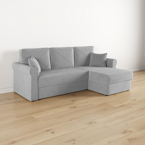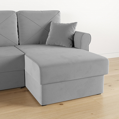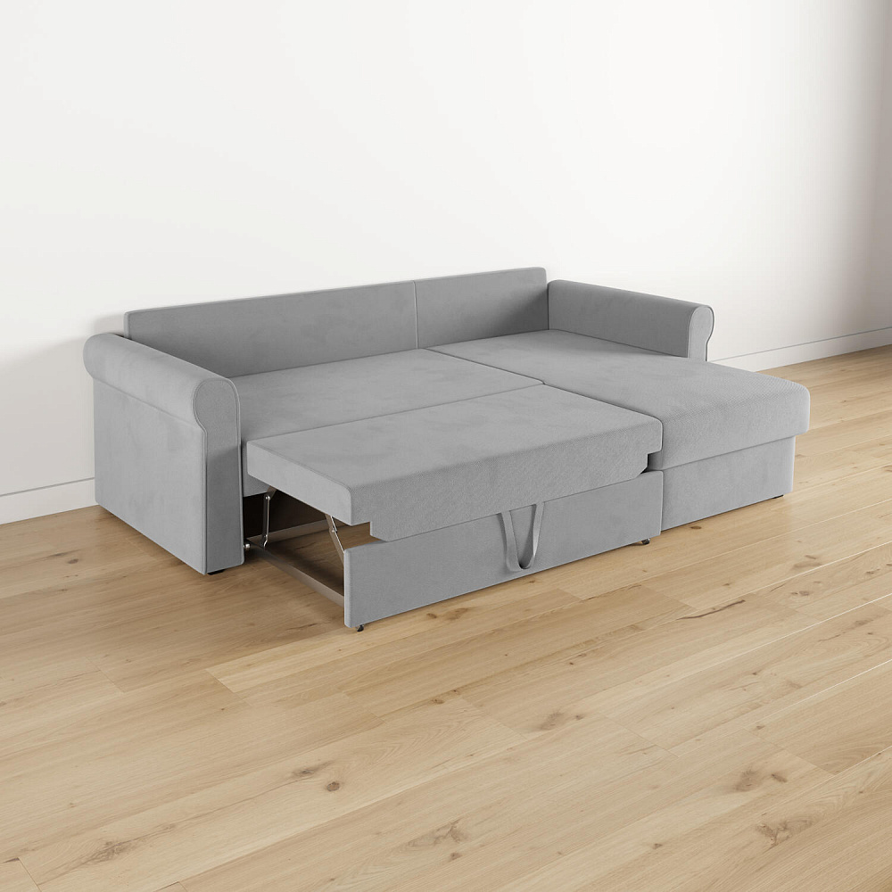 - Вместительный короб. В угловой части дивана скрыт ящик для постельных принадлежностей.