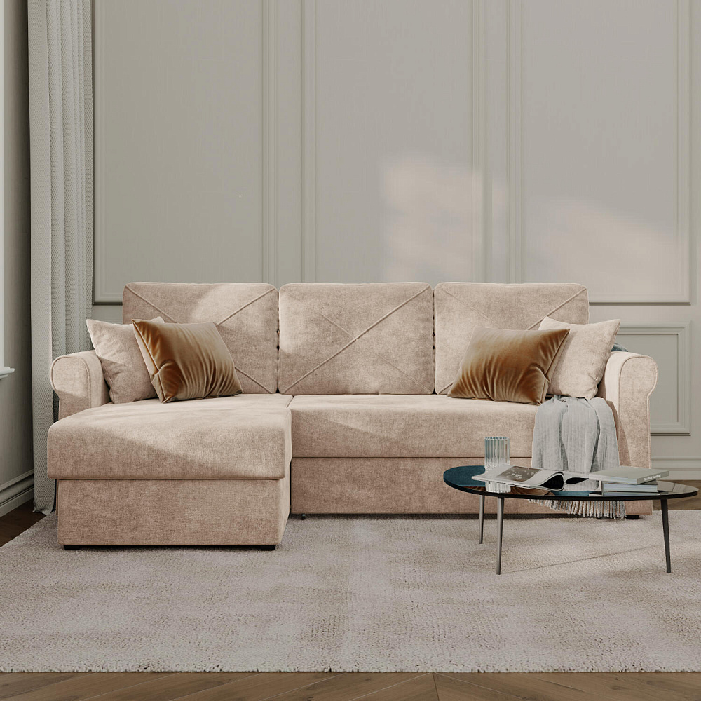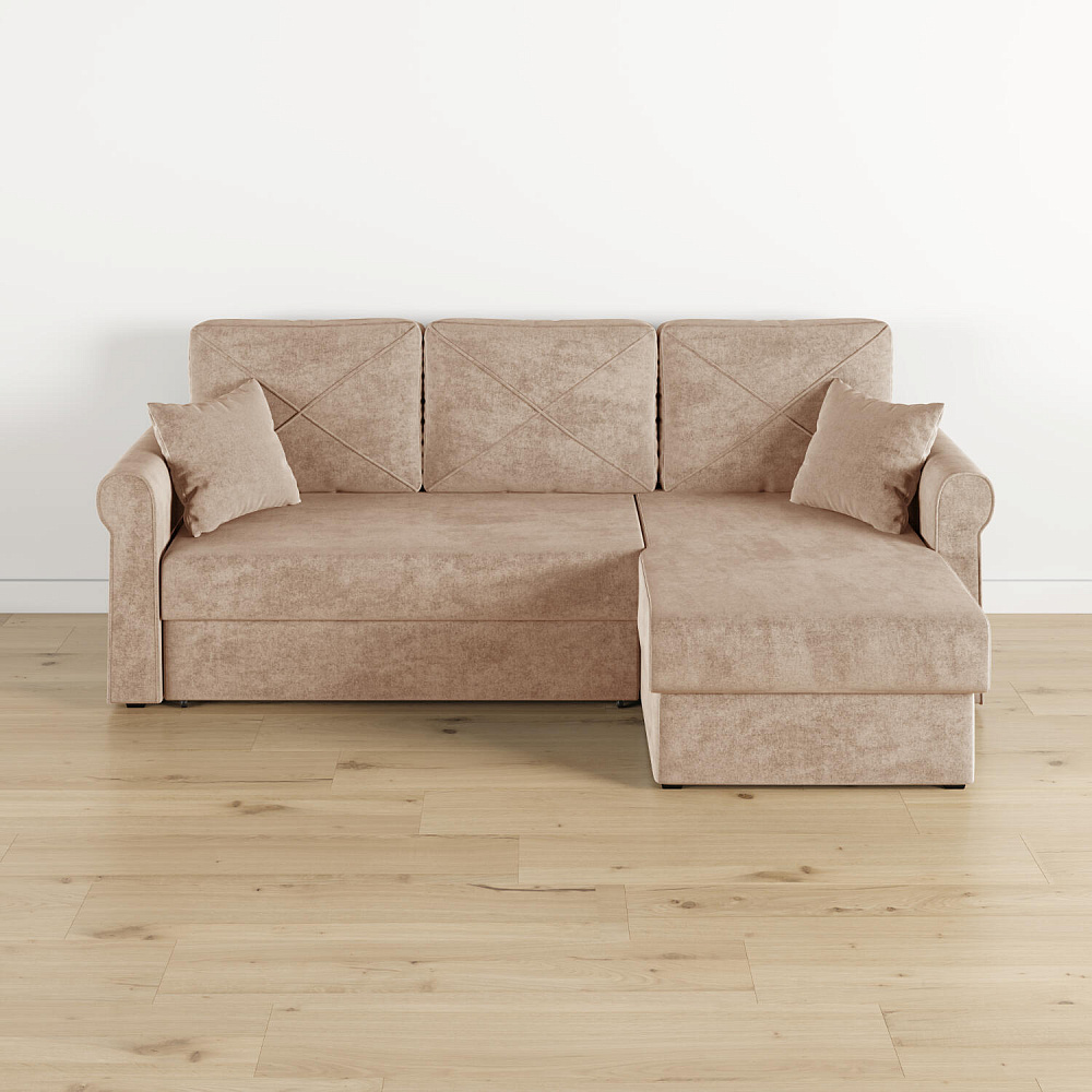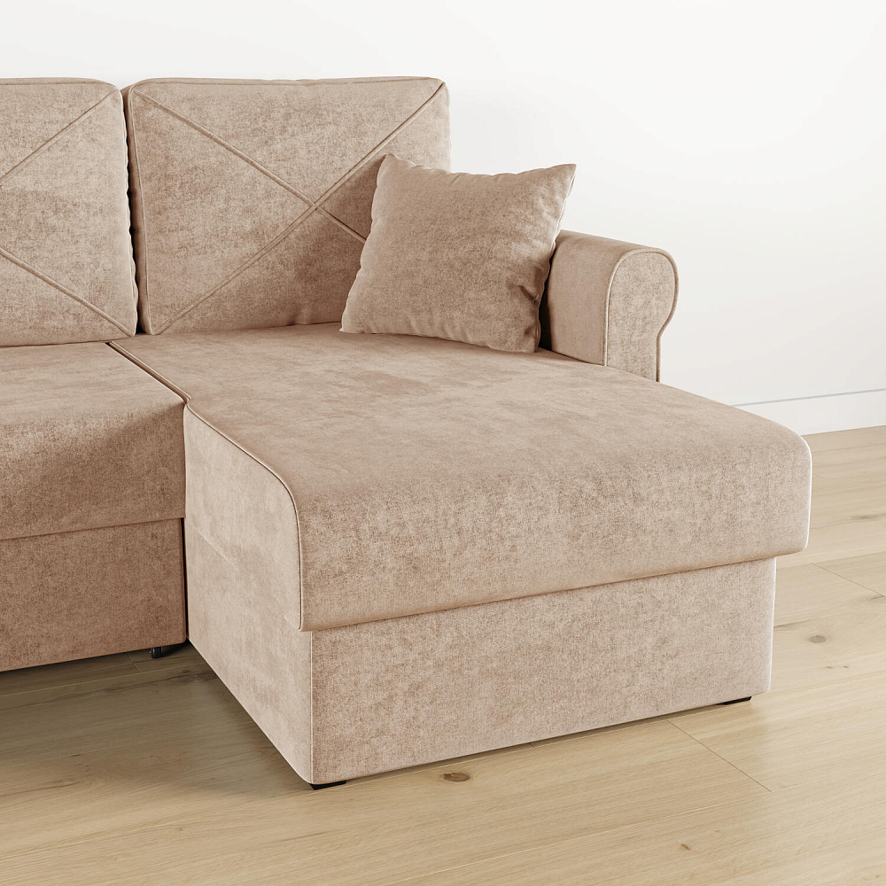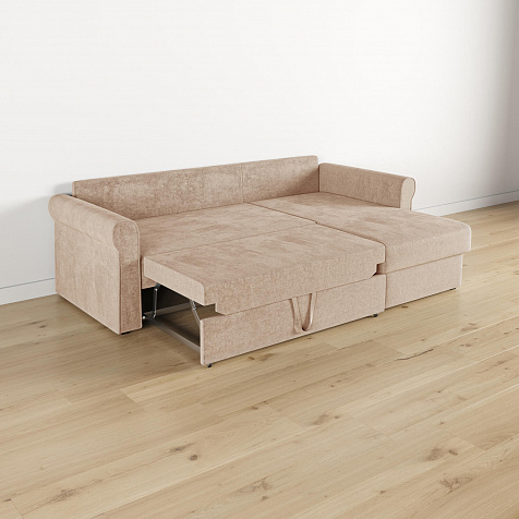 - Вместительный короб. В угловой части дивана скрыт ящик для постельных принадлежностей.