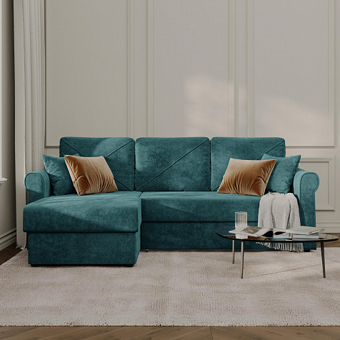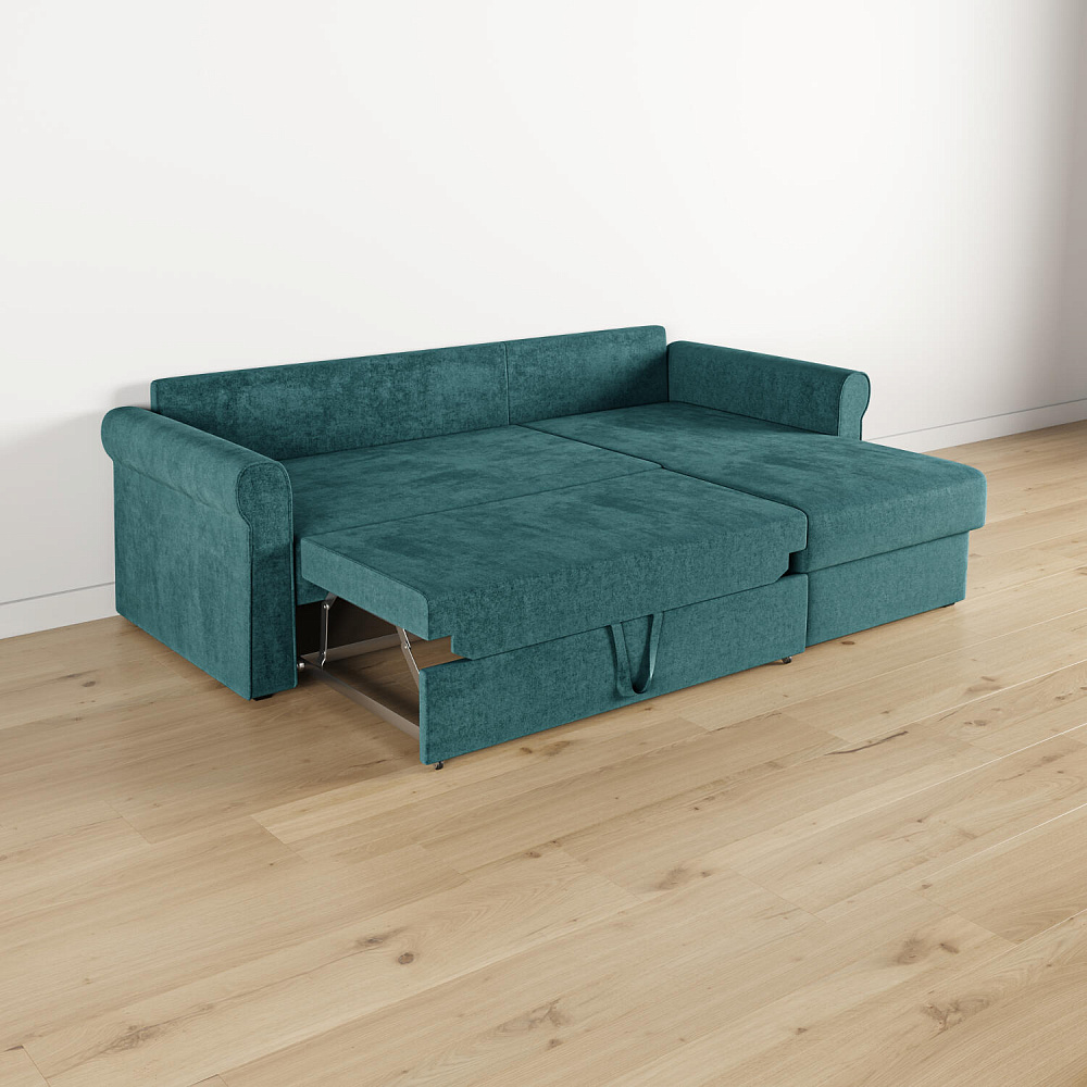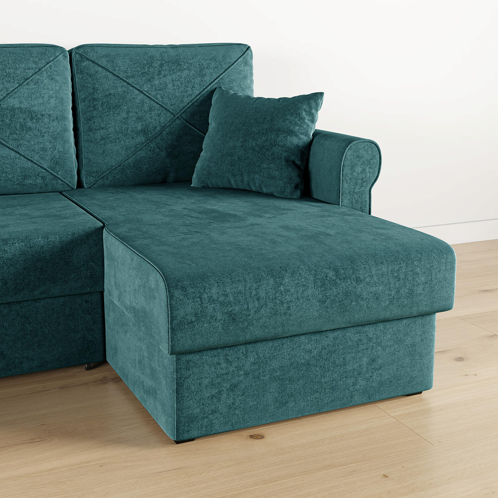 - Вместительный короб. В угловой части дивана скрыт ящик для постельных принадлежностей.