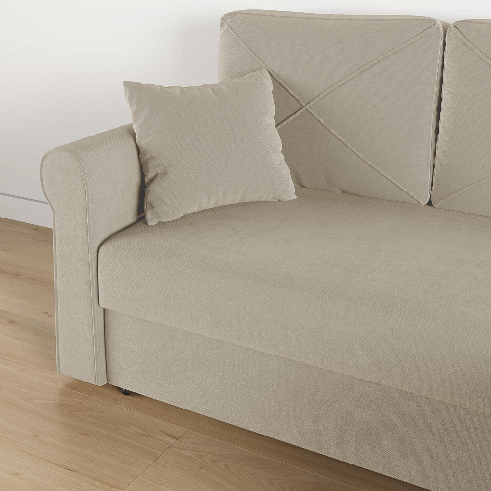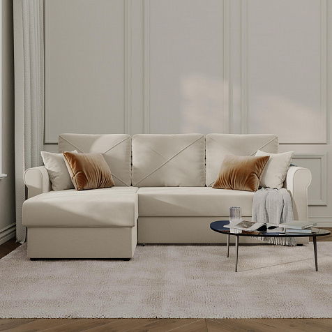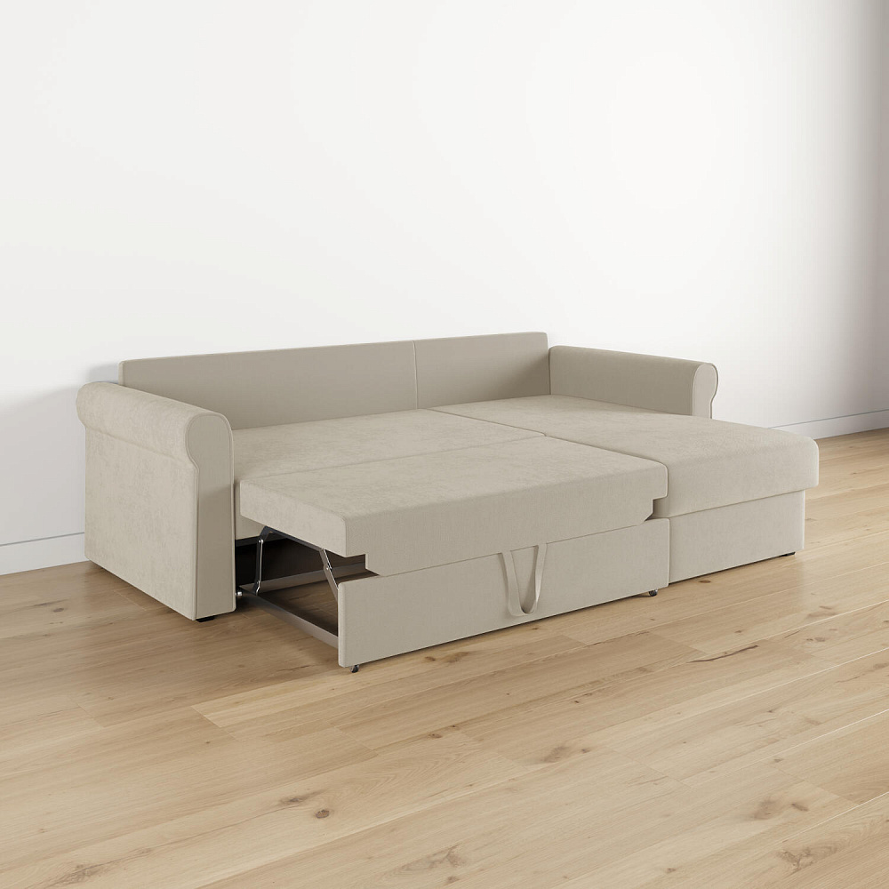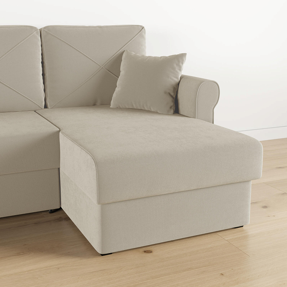 - Вместительный короб. В угловой части дивана скрыт ящик для постельных принадлежностей.
