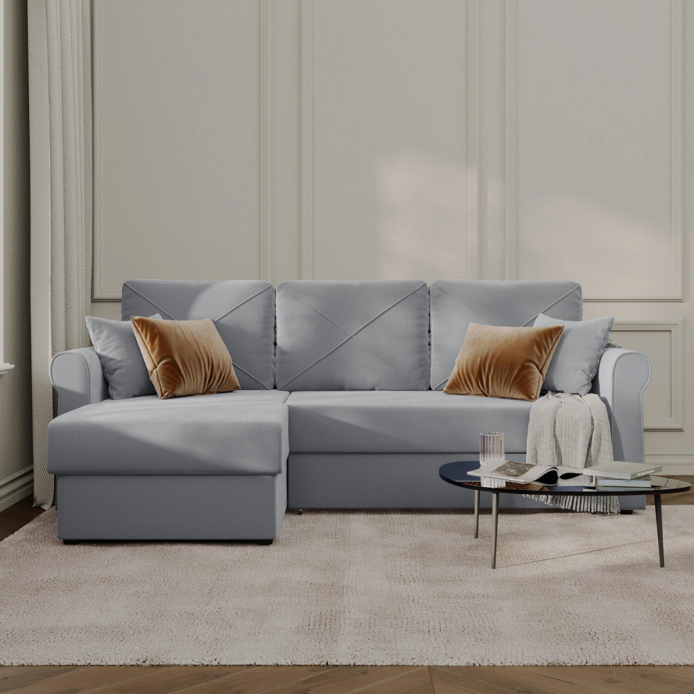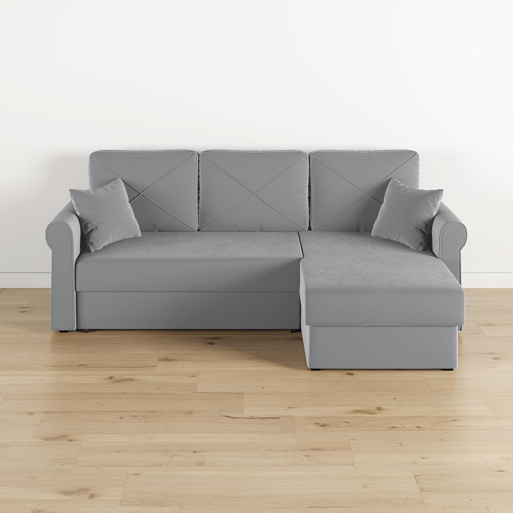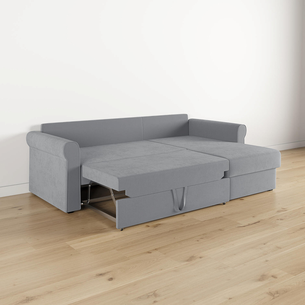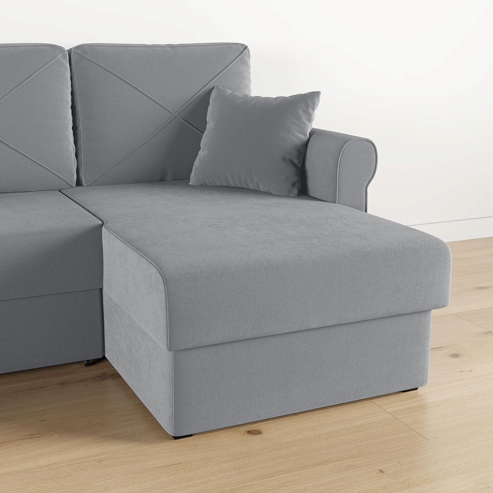 - Вместительный короб. В угловой части дивана скрыт ящик для постельных принадлежностей.