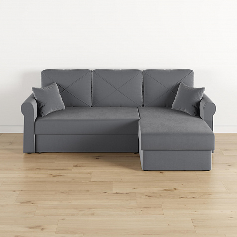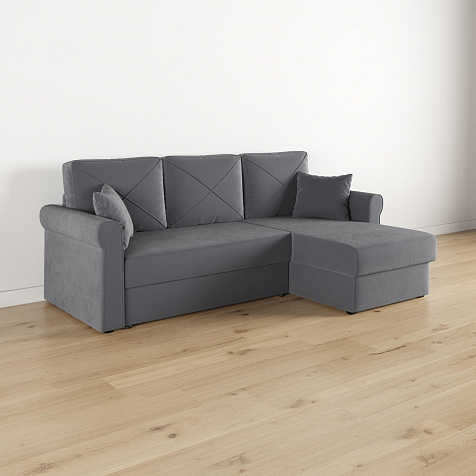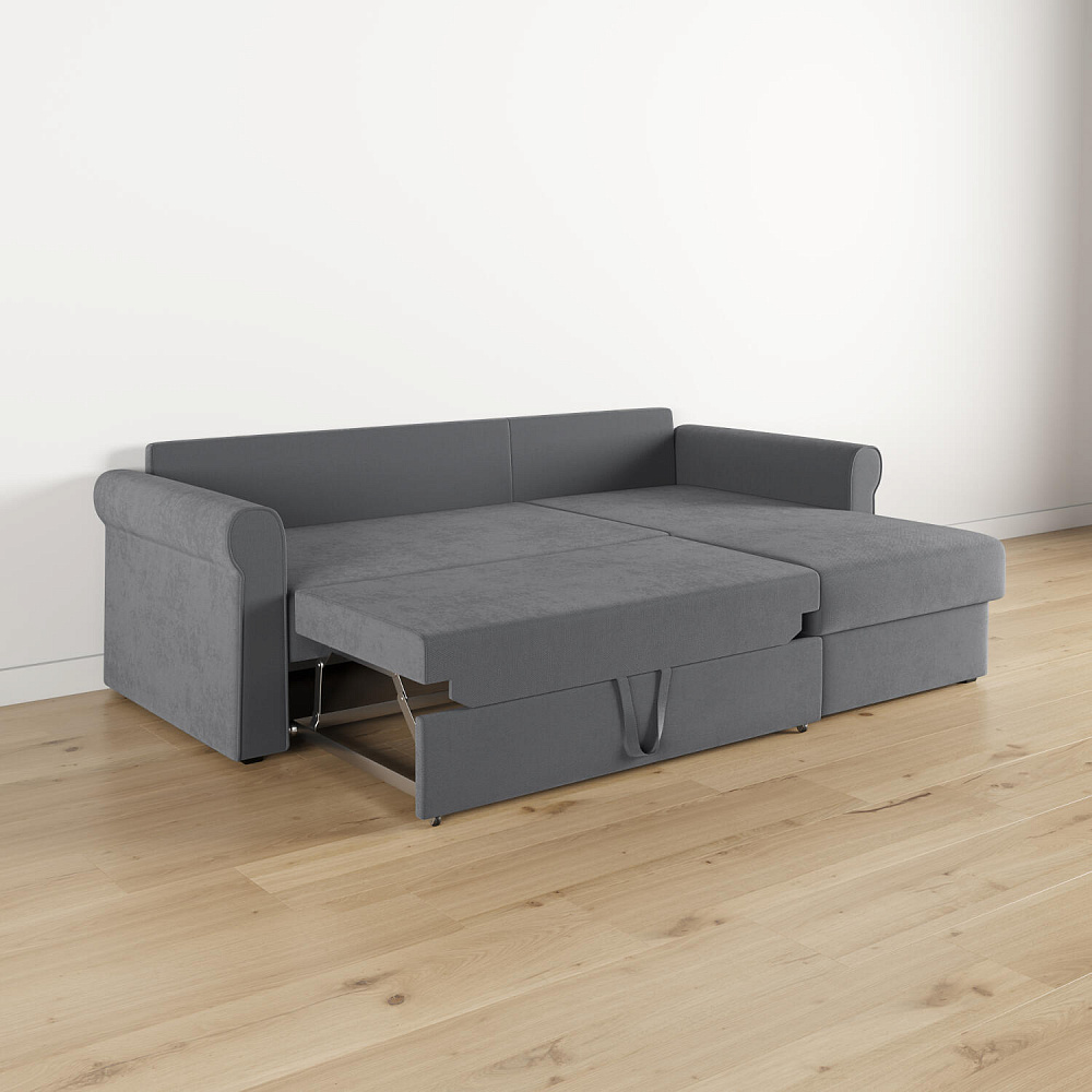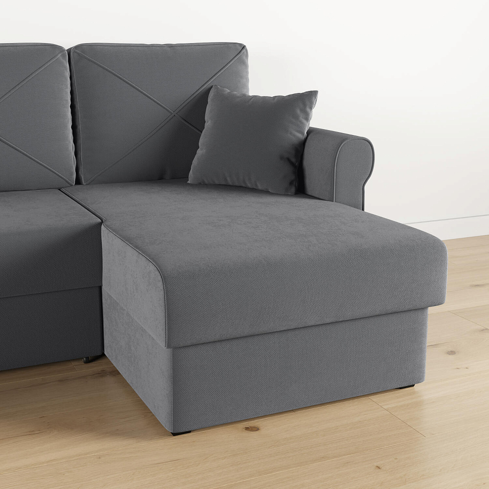 - Вместительный короб. В угловой части дивана скрыт ящик для постельных принадлежностей.