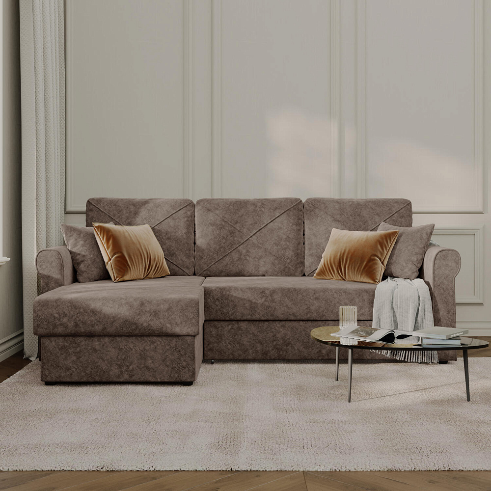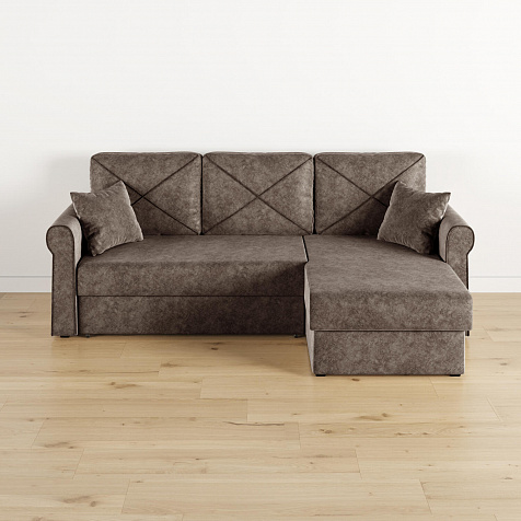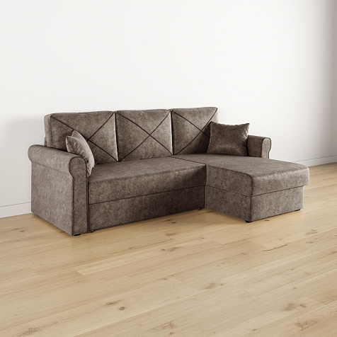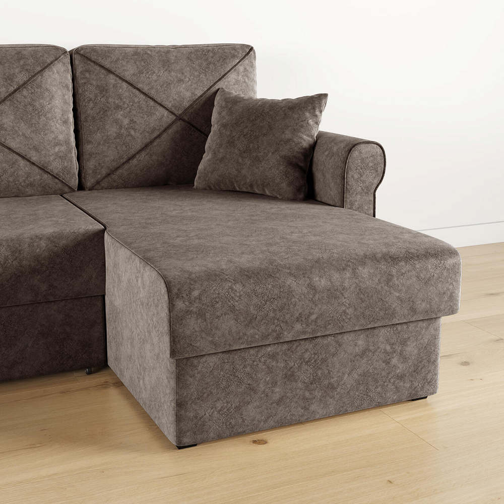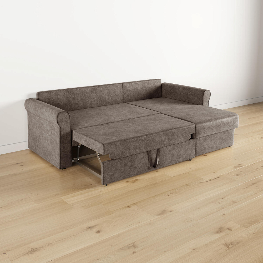 - Вместительный короб. В угловой части дивана скрыт ящик для постельных принадлежностей.