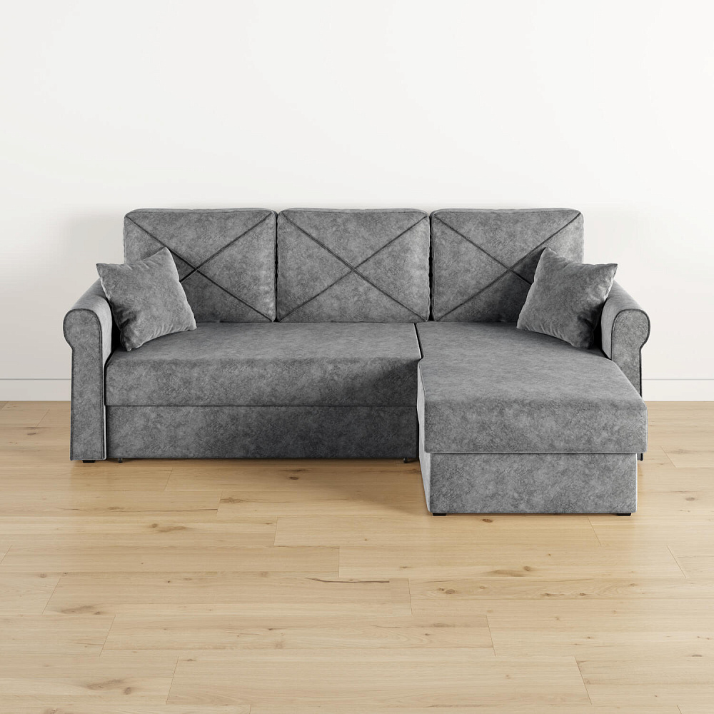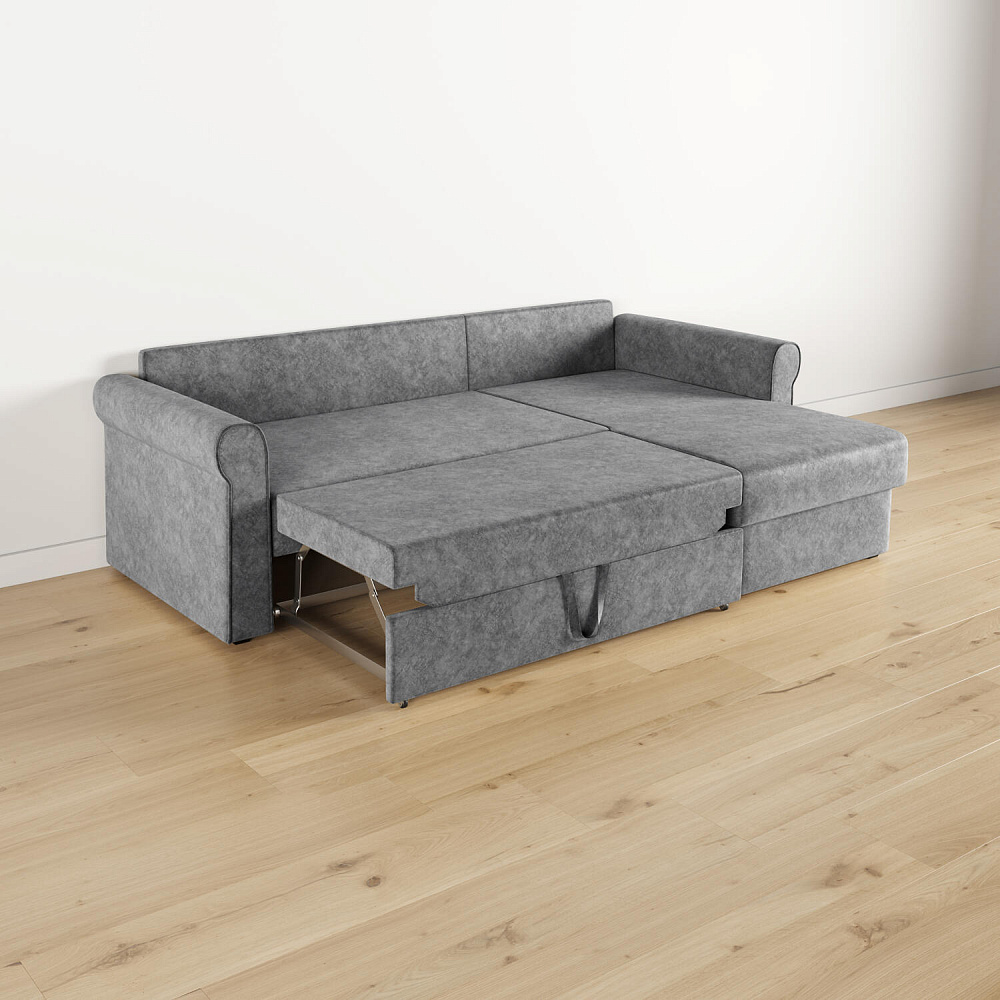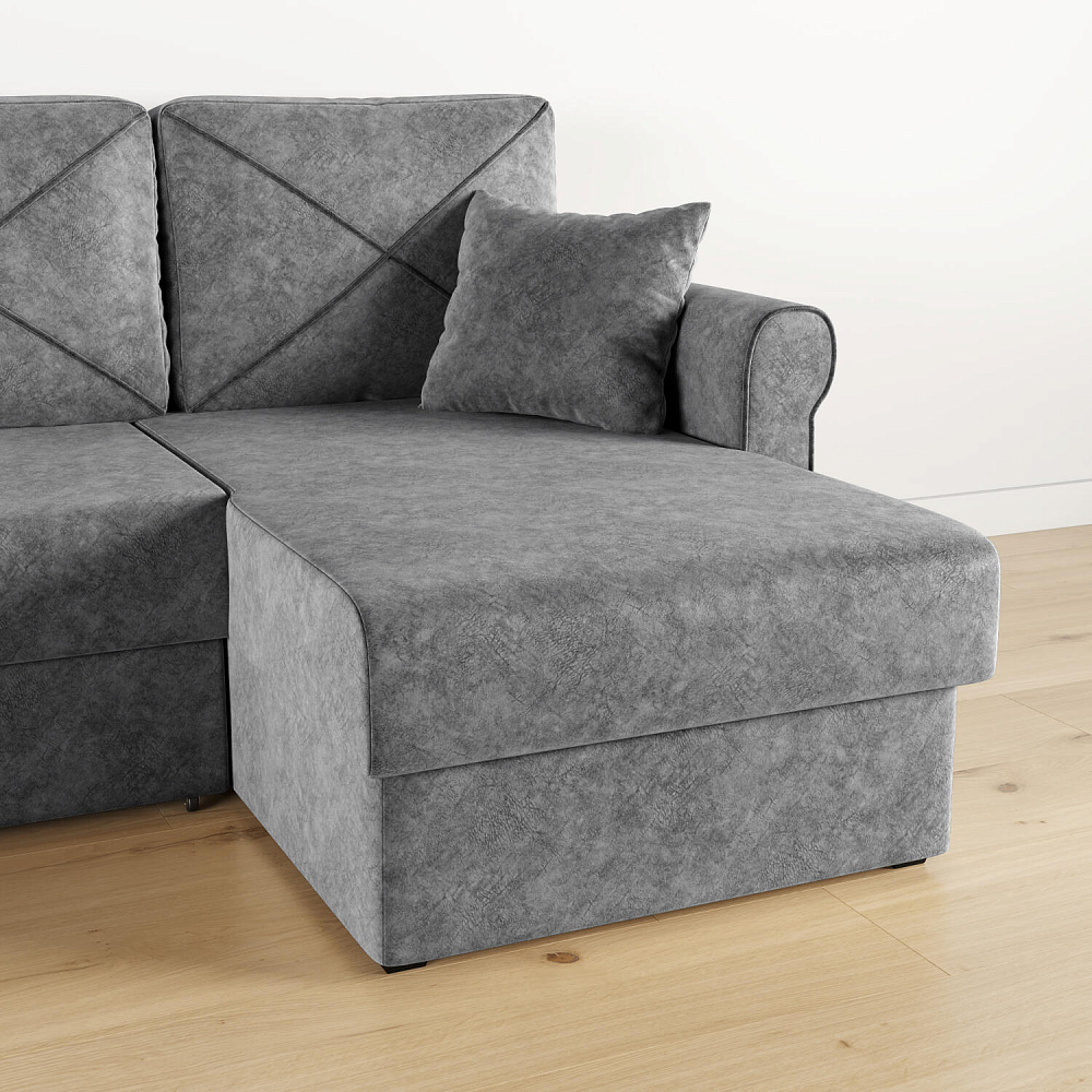 - Вместительный короб. В угловой части дивана скрыт ящик для постельных принадлежностей.