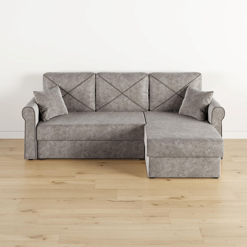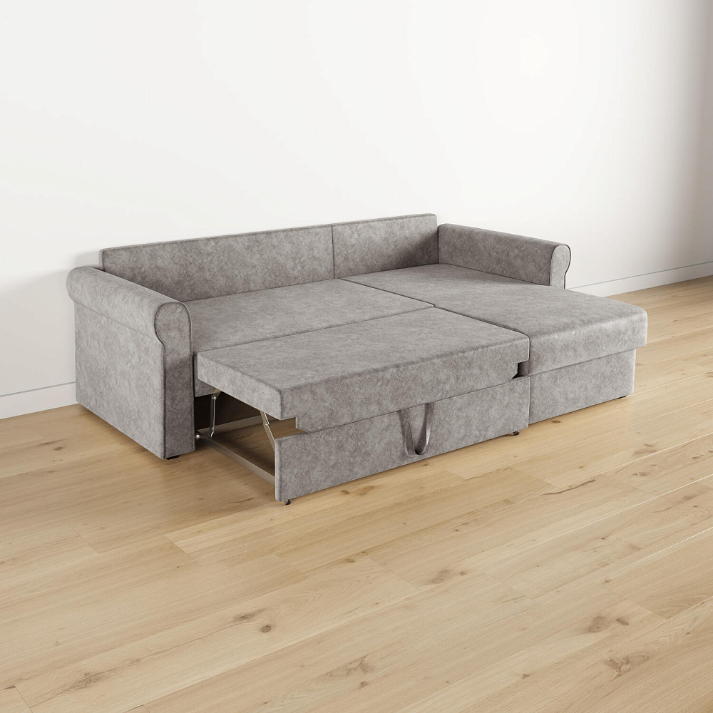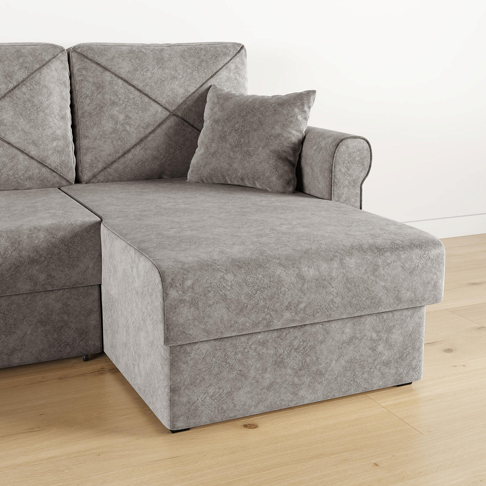 - Вместительный короб. В угловой части дивана скрыт ящик для постельных принадлежностей.