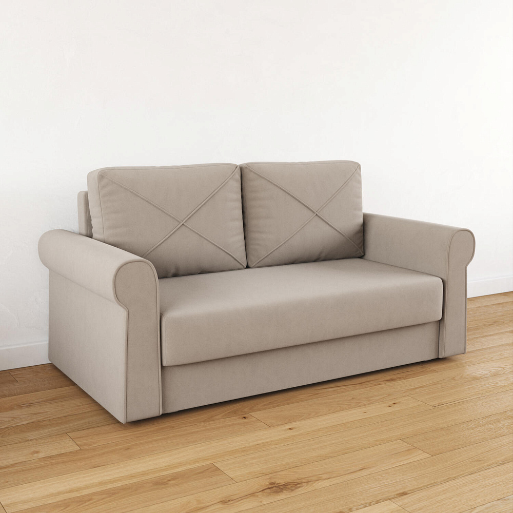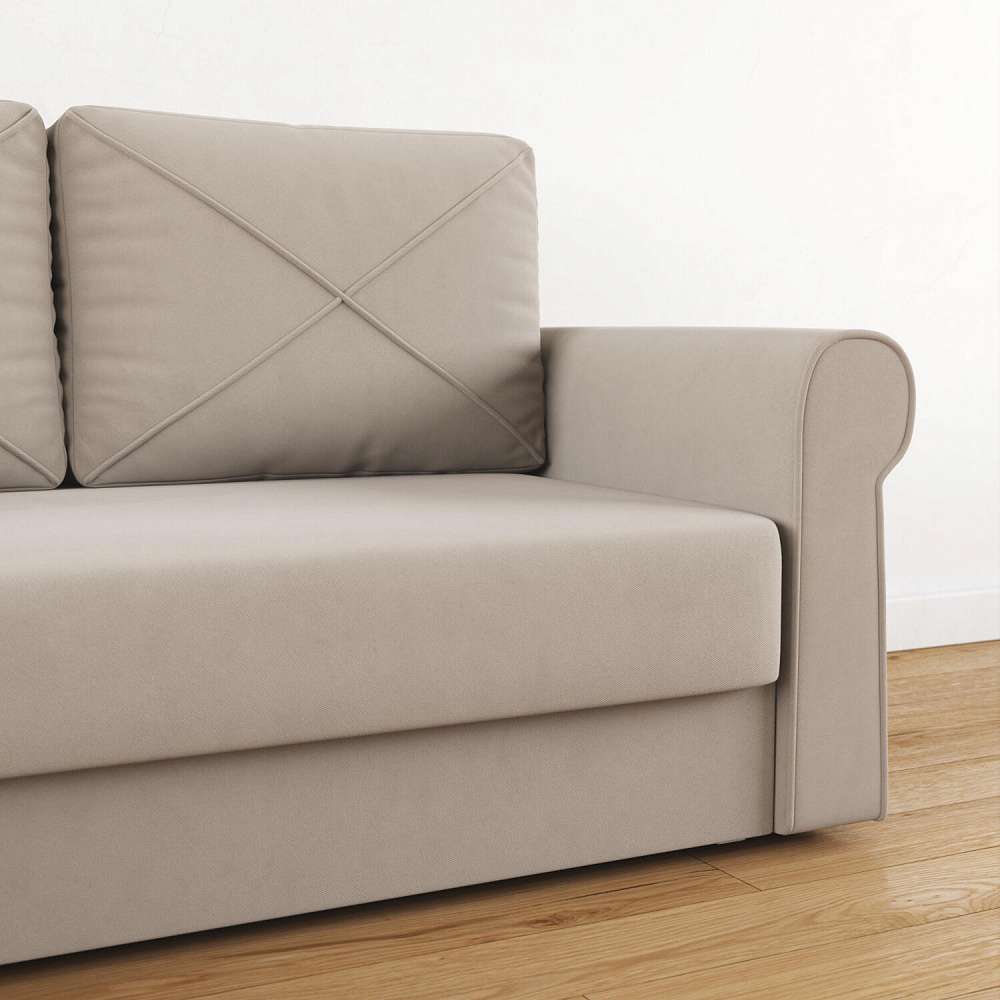 - Механизм трансформации «Еврокнижка». Диван легко раскладывается — нужно выкатить вперёд сиденье и опустить спинку, при этом отодвигать сам диван от стены не требуется.
