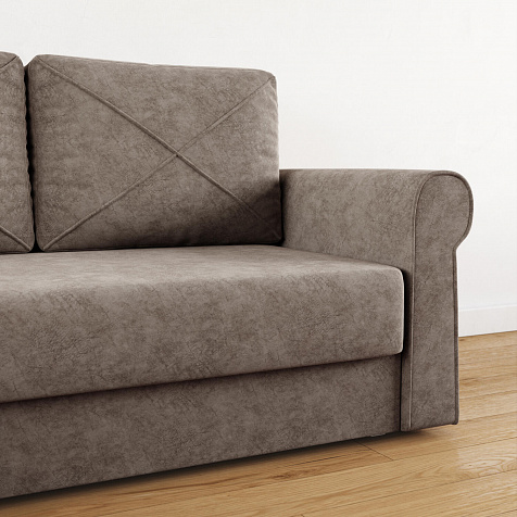 - Механизм трансформации «Еврокнижка». Диван легко раскладывается — нужно выкатить вперёд сиденье и опустить спинку, при этом отодвигать сам диван от стены не требуется.