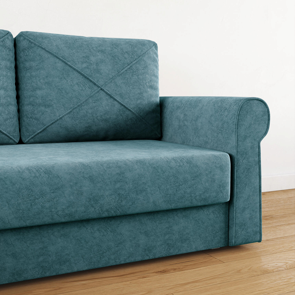 - Механизм трансформации «Еврокнижка». Диван легко раскладывается — нужно выкатить вперёд сиденье и опустить спинку, при этом отодвигать сам диван от стены не требуется.