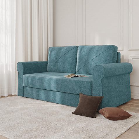 Двухместный диван «Имола» объединяет строгие геометрические формы и мягкую воздушность. Спинка выполнена в той же обивке, что и основная часть, что даёт возможность использовать диван для зонирования комнаты. Механизм трансформации «Еврокнижка» обеспечивает комфортное и ровное спальное место.