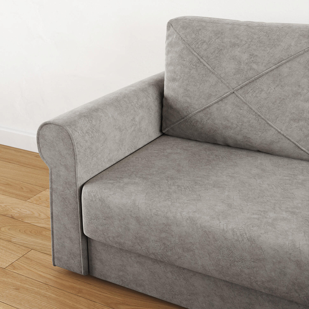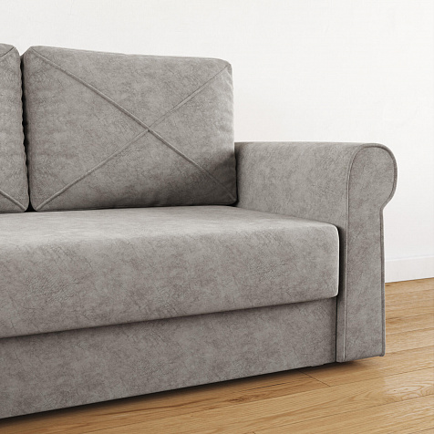 - Механизм трансформации «Еврокнижка». Диван легко раскладывается — нужно выкатить вперёд сиденье и опустить спинку, при этом отодвигать сам диван от стены не требуется.