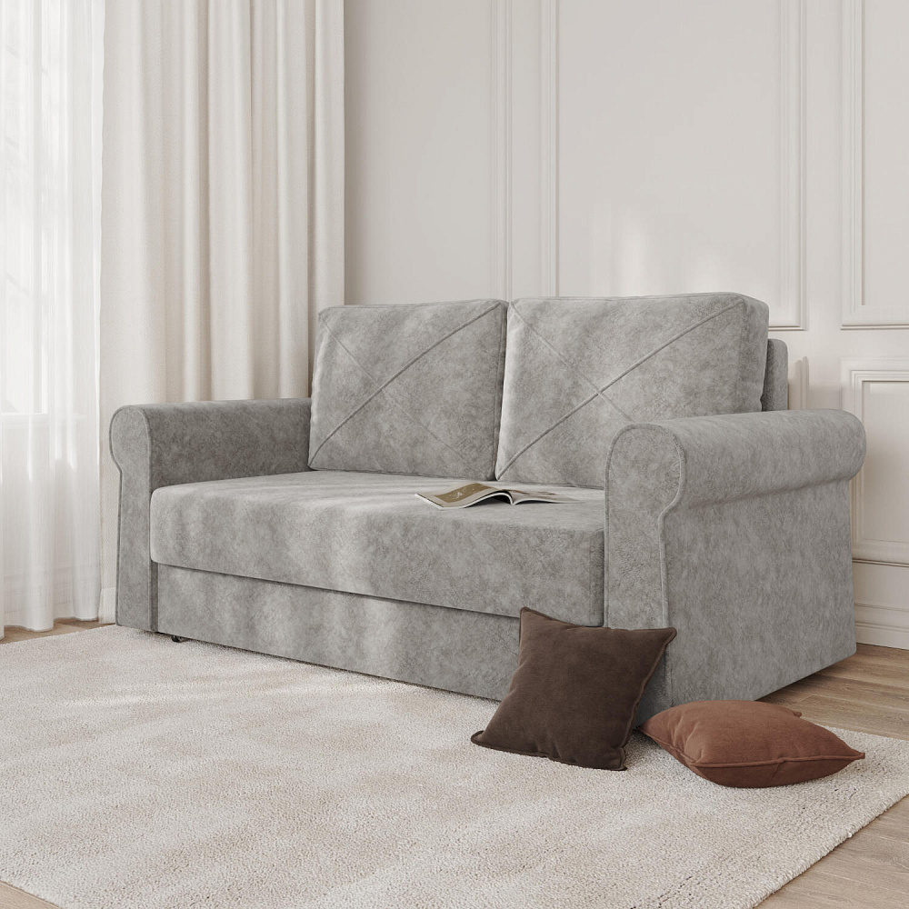Двухместный диван «Имола» объединяет строгие геометрические формы и мягкую воздушность. Спинка выполнена в той же обивке, что и основная часть, что даёт возможность использовать диван для зонирования комнаты. Механизм трансформации «Еврокнижка» обеспечивает комфортное и ровное спальное место.