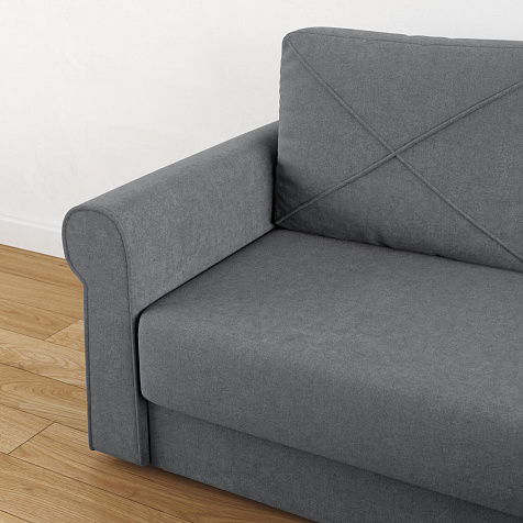 - Механизм трансформации «Еврокнижка». Диван легко раскладывается — нужно выкатить вперёд сиденье и опустить спинку, при этом отодвигать сам диван от стены не требуется.