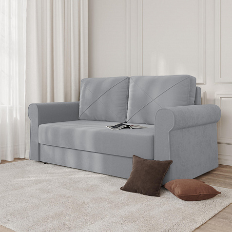 Двухместный диван «Имола» объединяет строгие геометрические формы и мягкую воздушность. Спинка выполнена в той же обивке, что и основная часть, что даёт возможность использовать диван для зонирования комнаты. Механизм трансформации «Еврокнижка» обеспечивает комфортное и ровное спальное место.