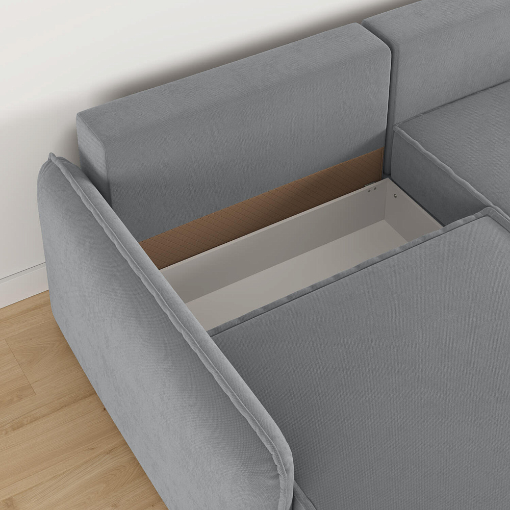 - Короб для белья. В диване предусмотрен просторный короб для хранения постельного белья и других вещей.