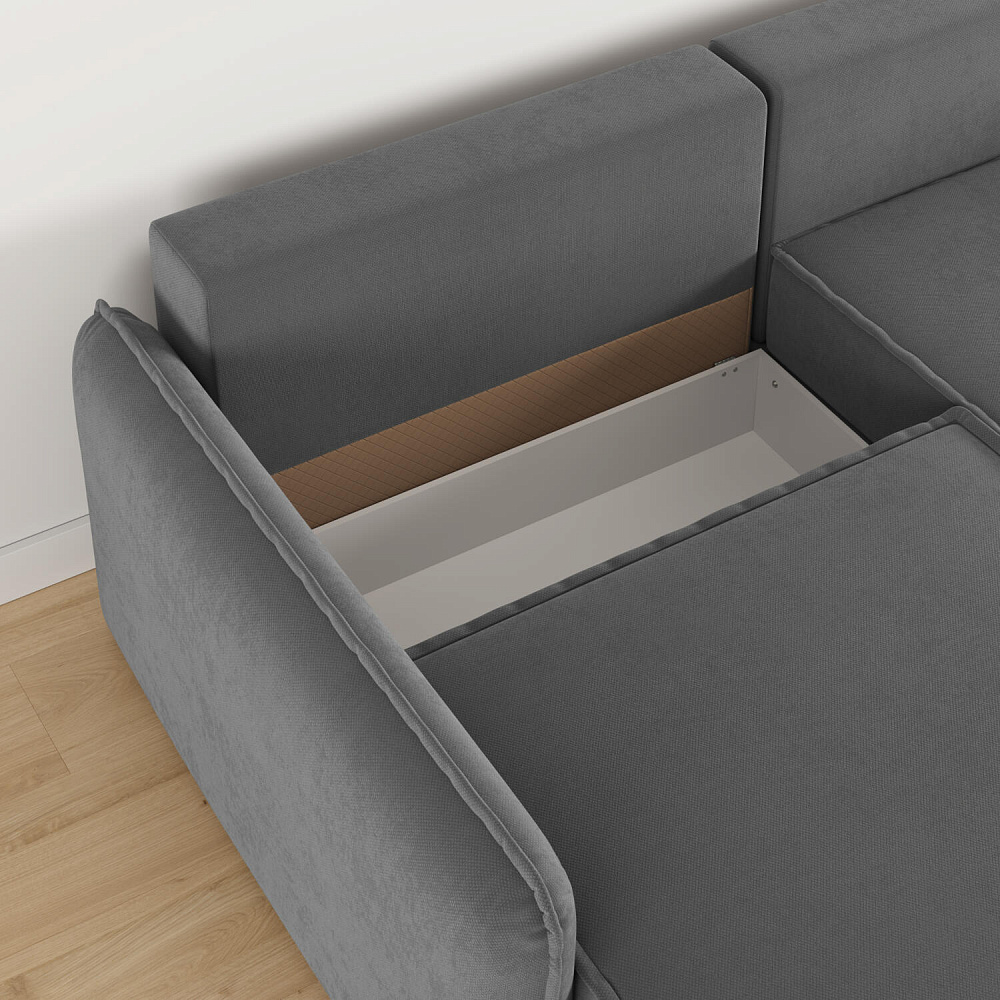 - Короб для белья. В диване предусмотрен просторный короб для хранения постельного белья и других вещей.