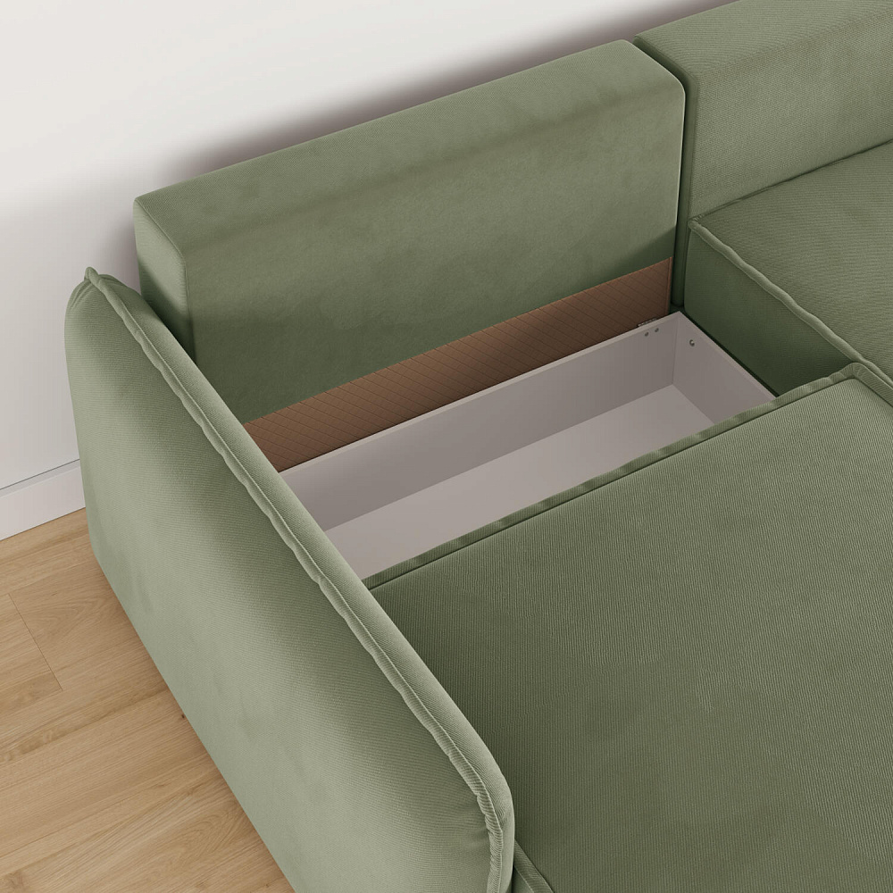 - Короб для белья. В диване предусмотрен просторный короб для хранения постельного белья и других вещей.