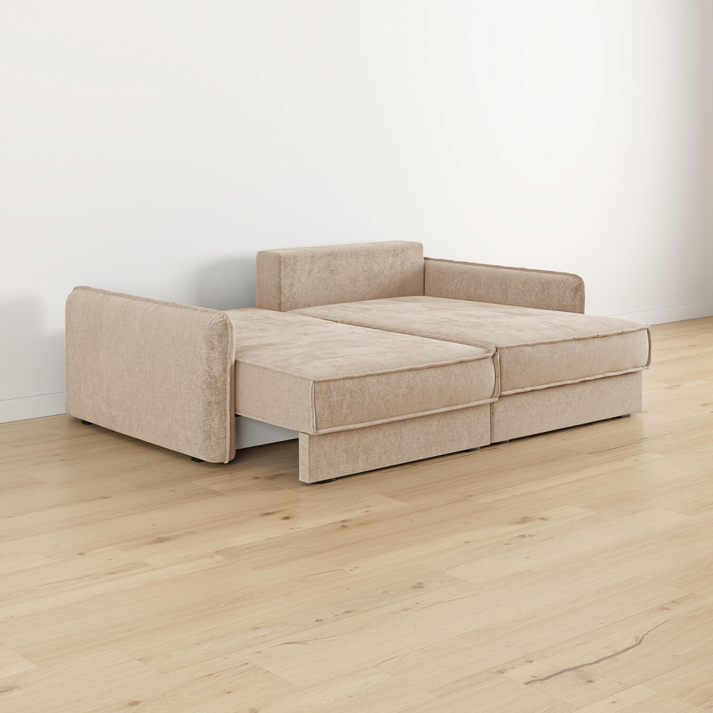 - Размер спального места — 200 х 148 см. Диван легко трансформируется в полноценное двуспальное место для сна и отдыха двух человек.