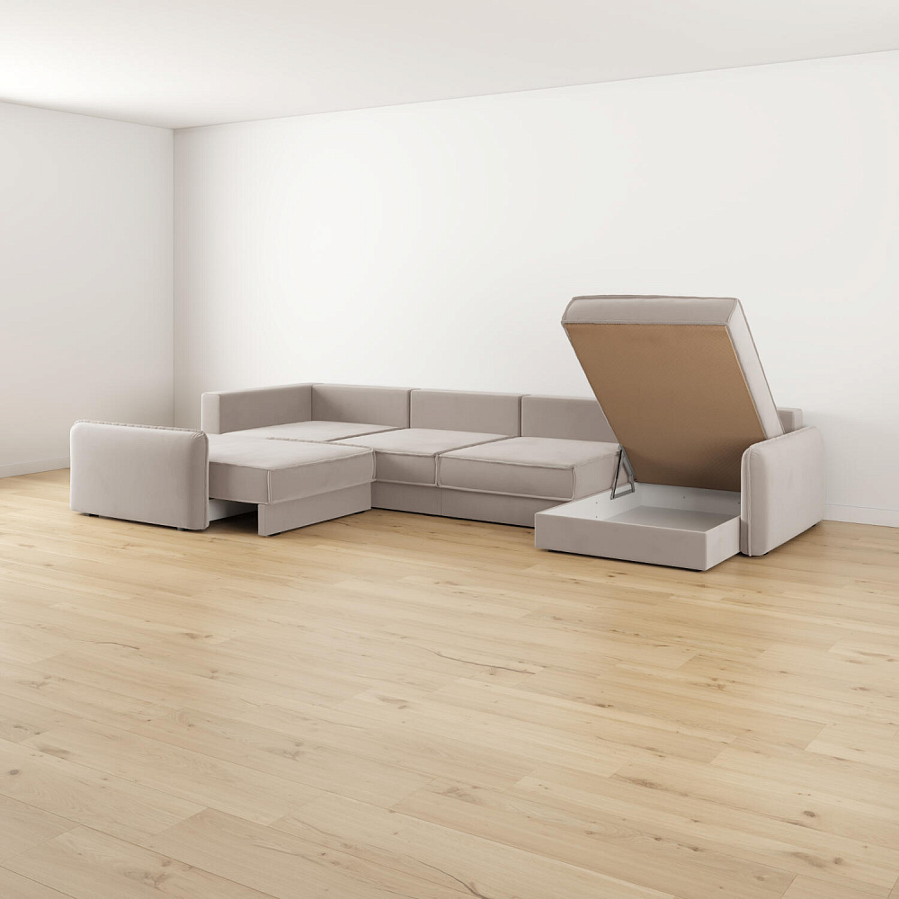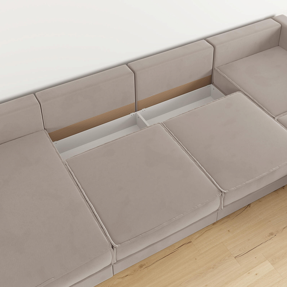 - Два короба для белья. В диване и оттоманке предусмотрены просторные коробы для хранения постельных принадлежностей и других вещей.