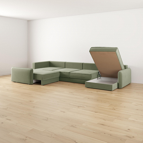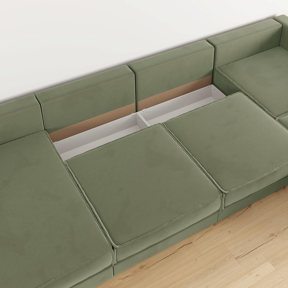 - Два короба для белья. В диване и оттоманке предусмотрены просторные коробы для хранения постельных принадлежностей и других вещей.