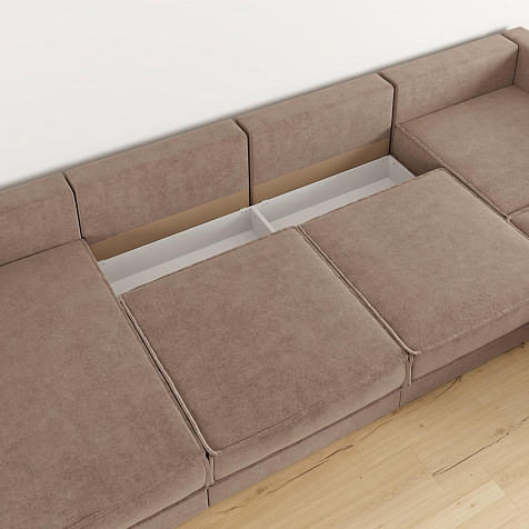 - Два короба для белья. В диване и оттоманке предусмотрены просторные коробы для хранения постельных принадлежностей и других вещей.