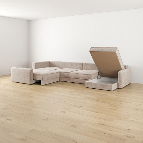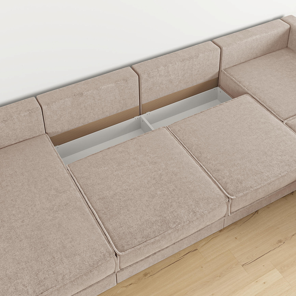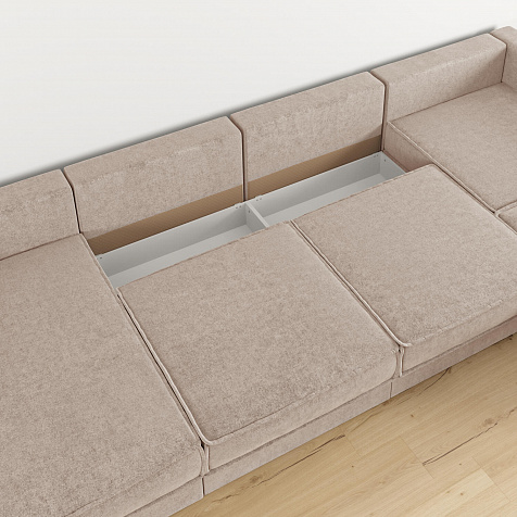 - Два короба для белья. В диване и оттоманке предусмотрены просторные коробы для хранения постельных принадлежностей и других вещей.