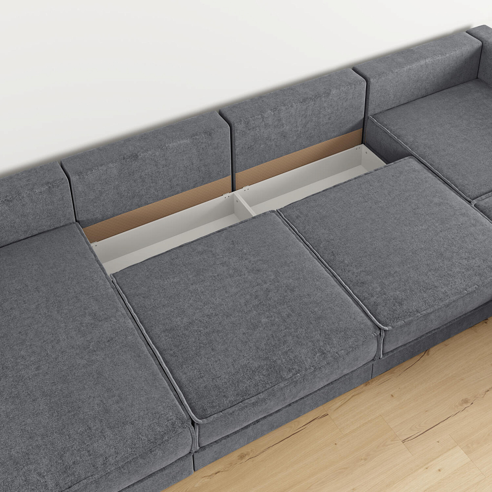 - Два короба для белья. В диване и оттоманке предусмотрены просторные коробы для хранения постельных принадлежностей и других вещей.