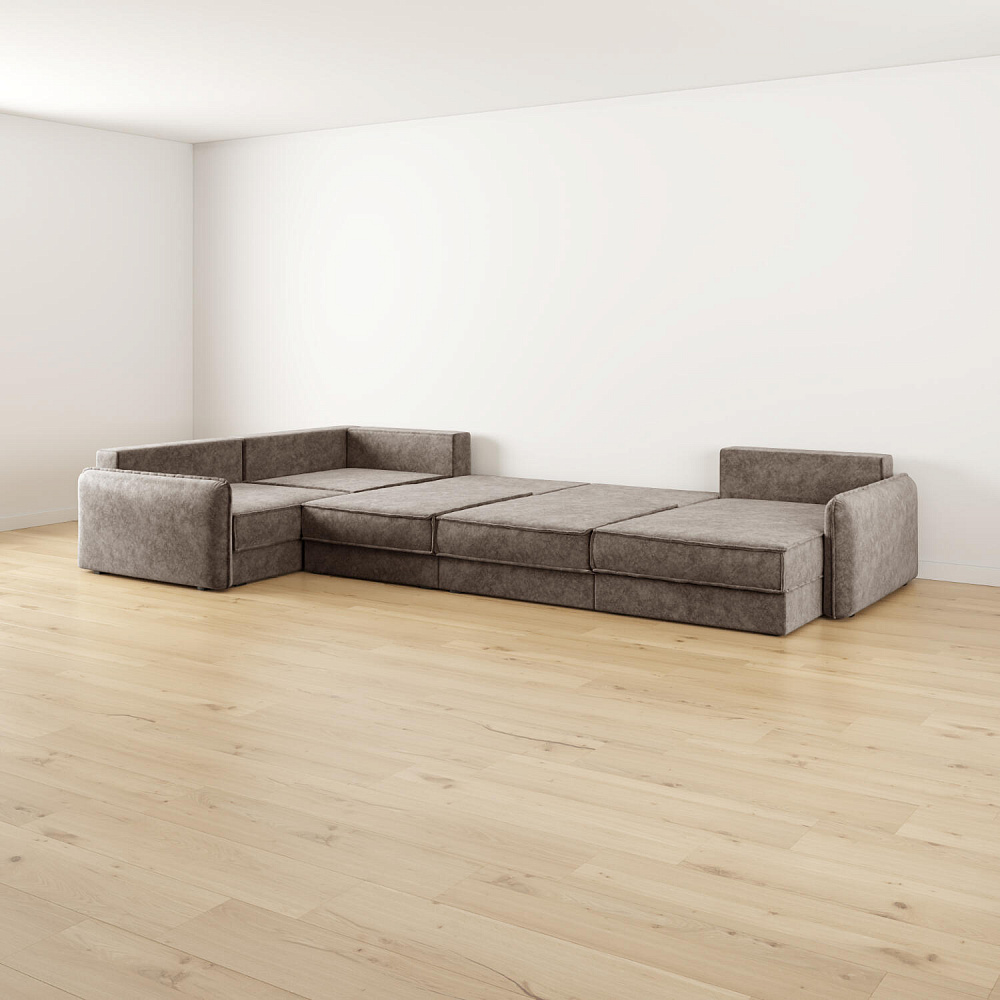 - Размер спального места — 400 х 167 см. Диван легко трансформируется в широкое двуспальное место для сна и отдыха двух человек.