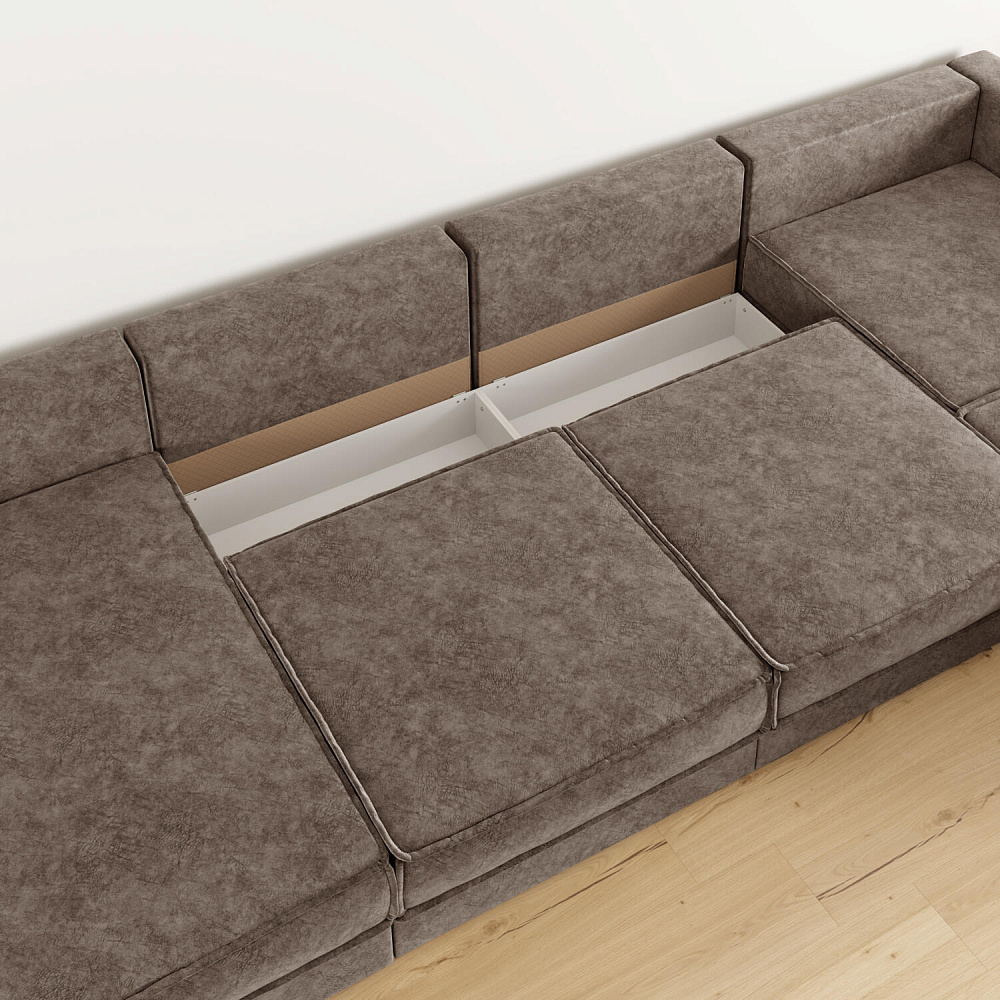 - Два короба для белья. В диване и оттоманке предусмотрены просторные коробы для хранения постельных принадлежностей и других вещей.
